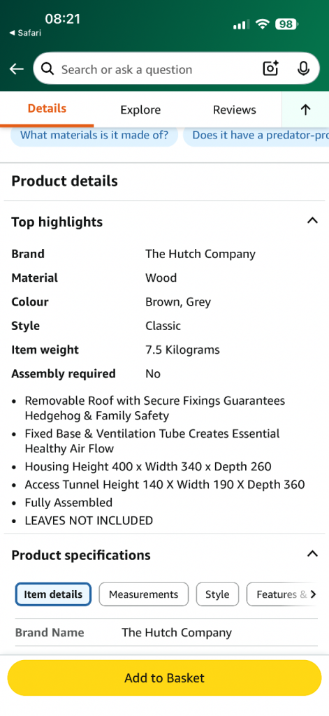 Posting for 2+ monthsHutch company was 47 big hedgehog house no offer