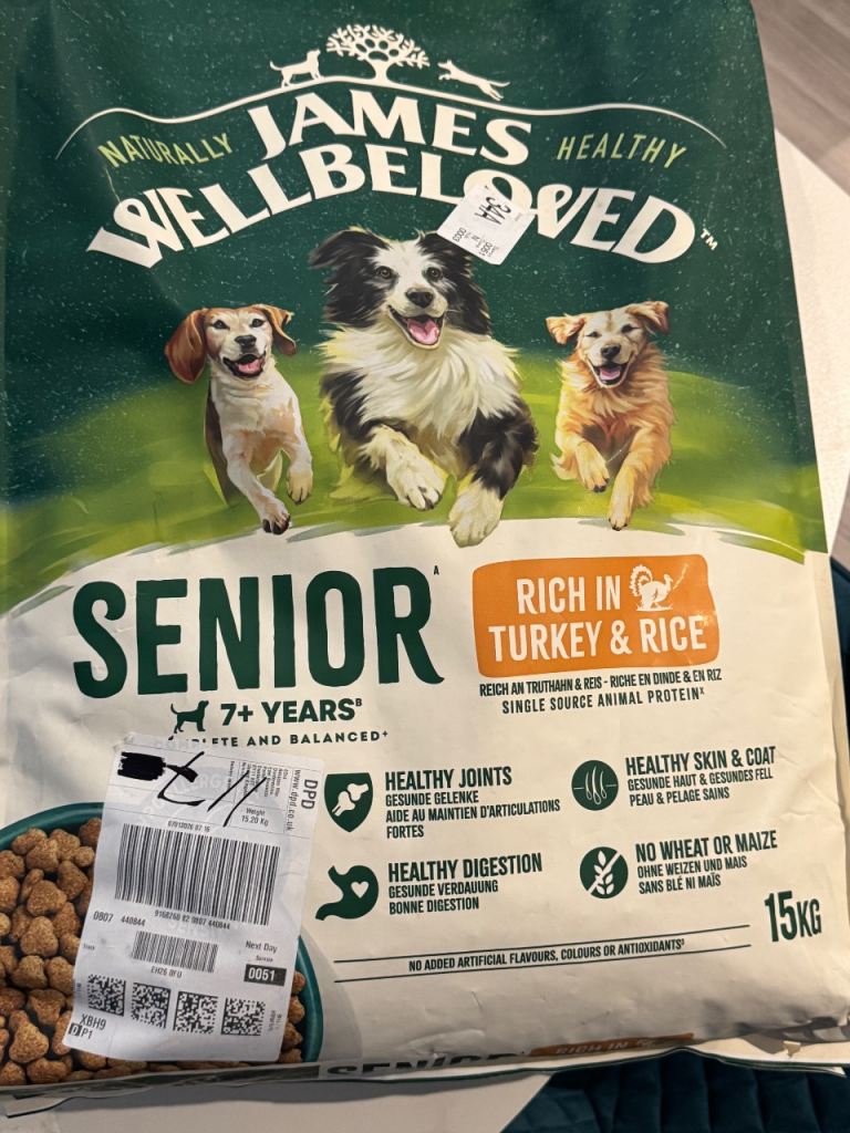 Posting for 14+ yearsJames Wellbeloved Senior unopened 15kg bag