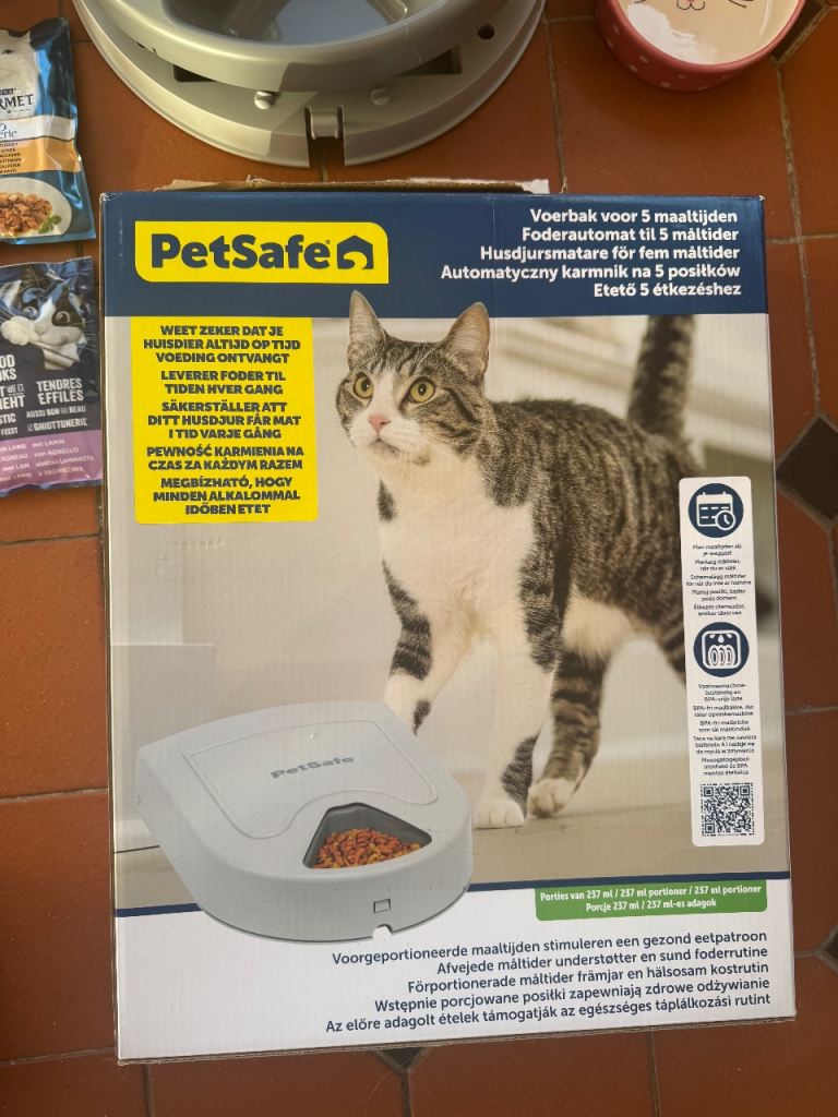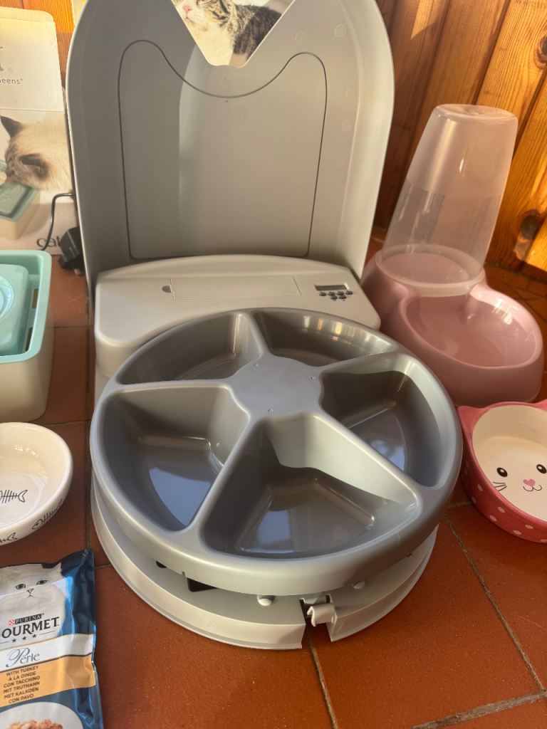 - Petsafe automated feeder fully programmable , 5 sections , as new , batteries newly installed also .