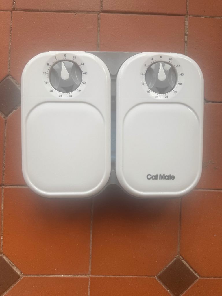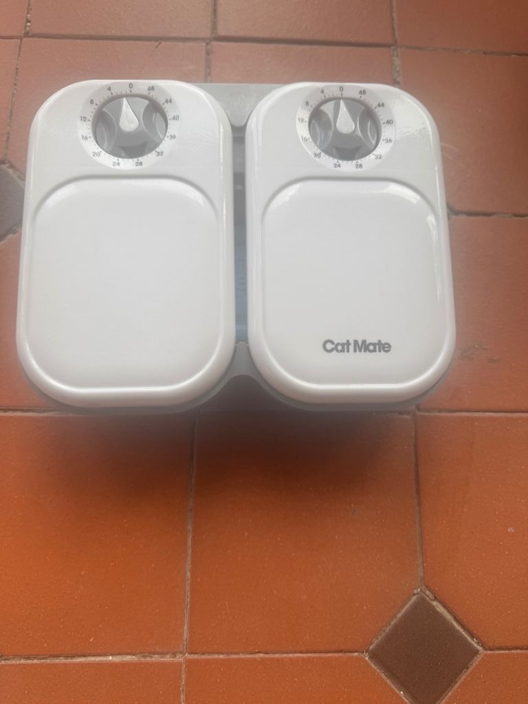 - CatMate automated feeder 2 compartments with ice cooler pack and new batteries .