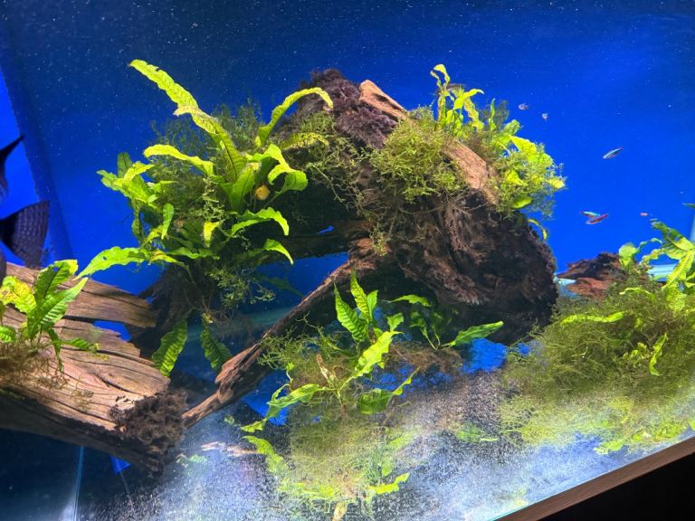 Large bog wood covered in plants