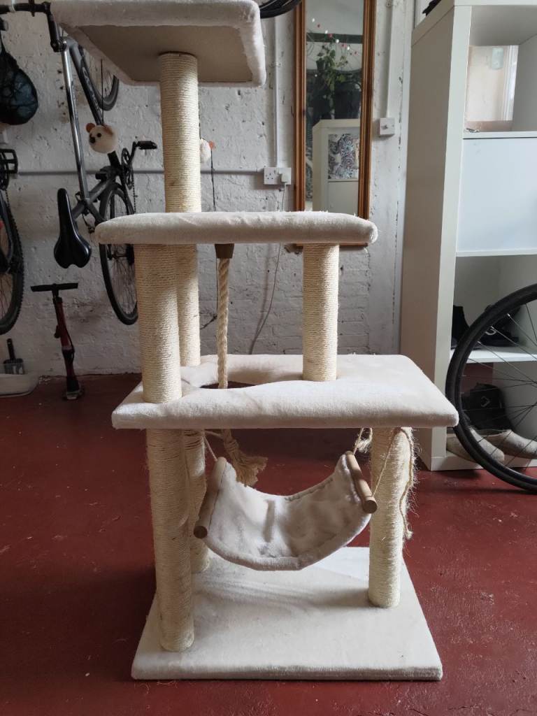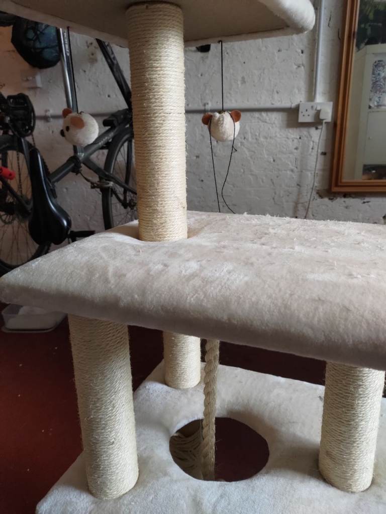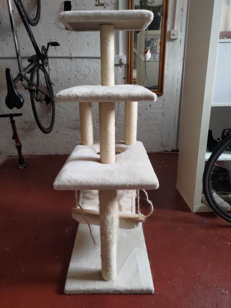 Used but still functional Large Cat Tree/ scratch post, it is 119cm high. base is 60cm by 40cm. Inspect pictures for condition. Collection from hackney wick e9, near overground. can be taken apart for transport
