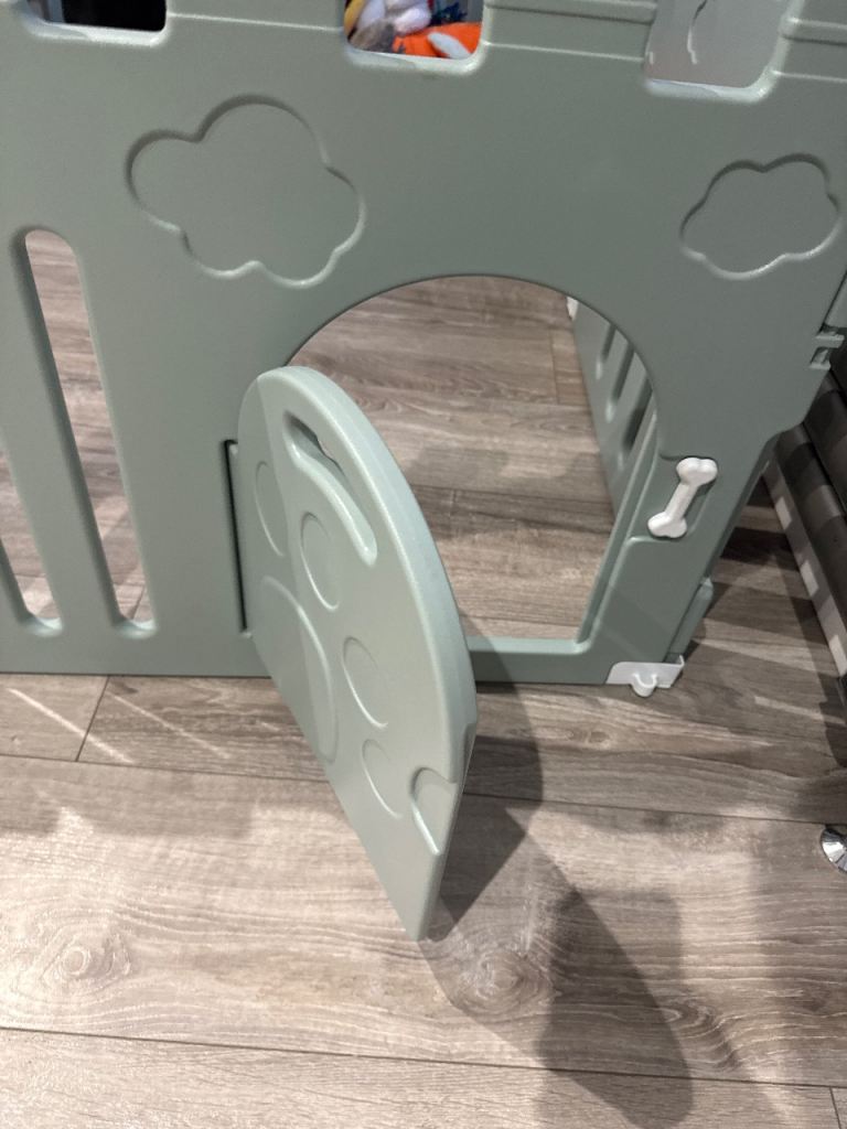 This dog pen is perfect for your new wee puppy gives more freedom for your puppy outside of a normal cage as you see in the first photo we have a Labrador puppy who has gotten just a little too big for it but it fits his bed puppy pads food and water bowl with room still to spare
