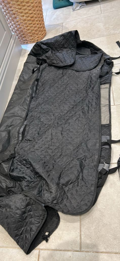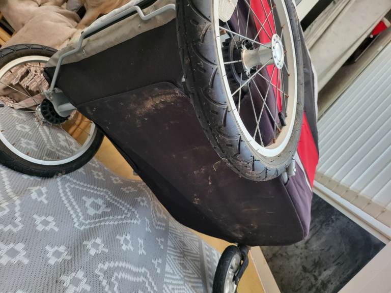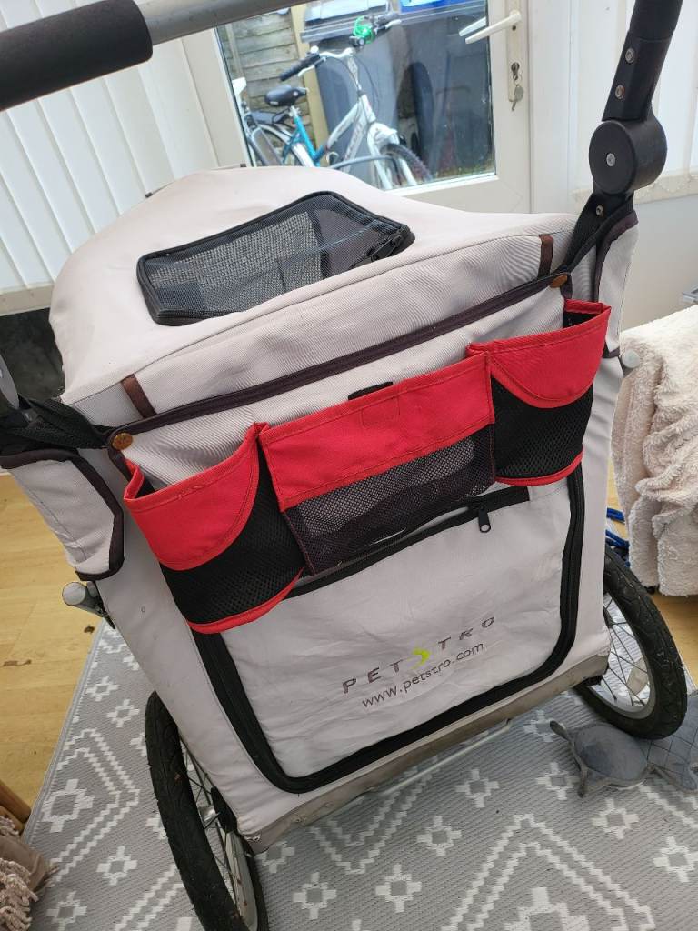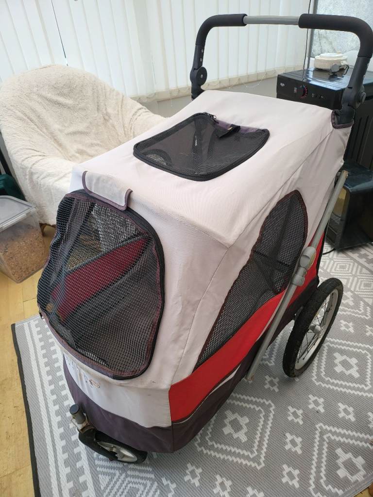 Large dog pram has been used alot as can see by pictures but still good pram and smooth when pushing it along. Does fold down. Haven't got booklet with it for weight capacity but when looked at one same on Google says upto 45kg. Only selling as sadly I lost my 19 year old staffy due to bad health collection only from fy2