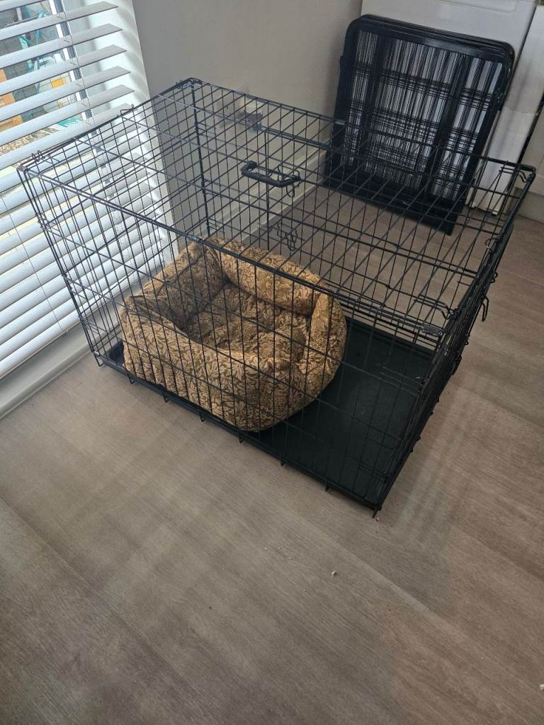 Posting for 5+ yearsLarge dogs crate with removable tray , collapsible and double doored. 2 available
