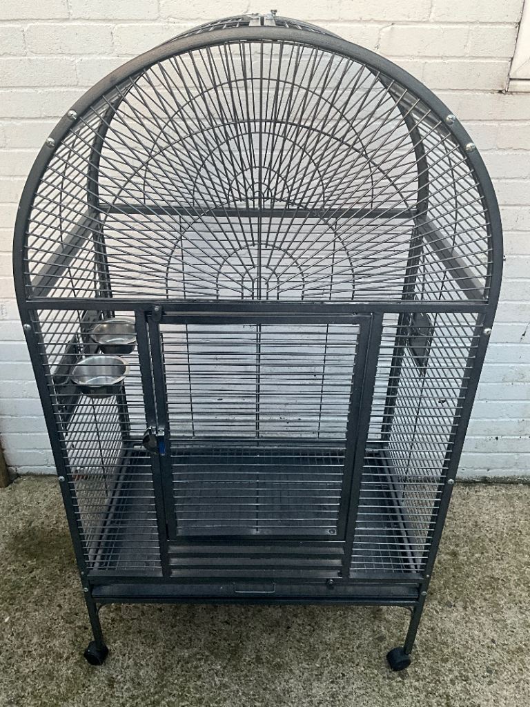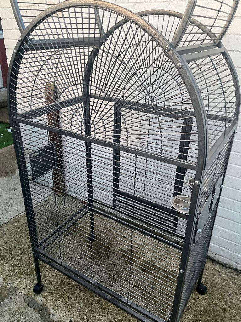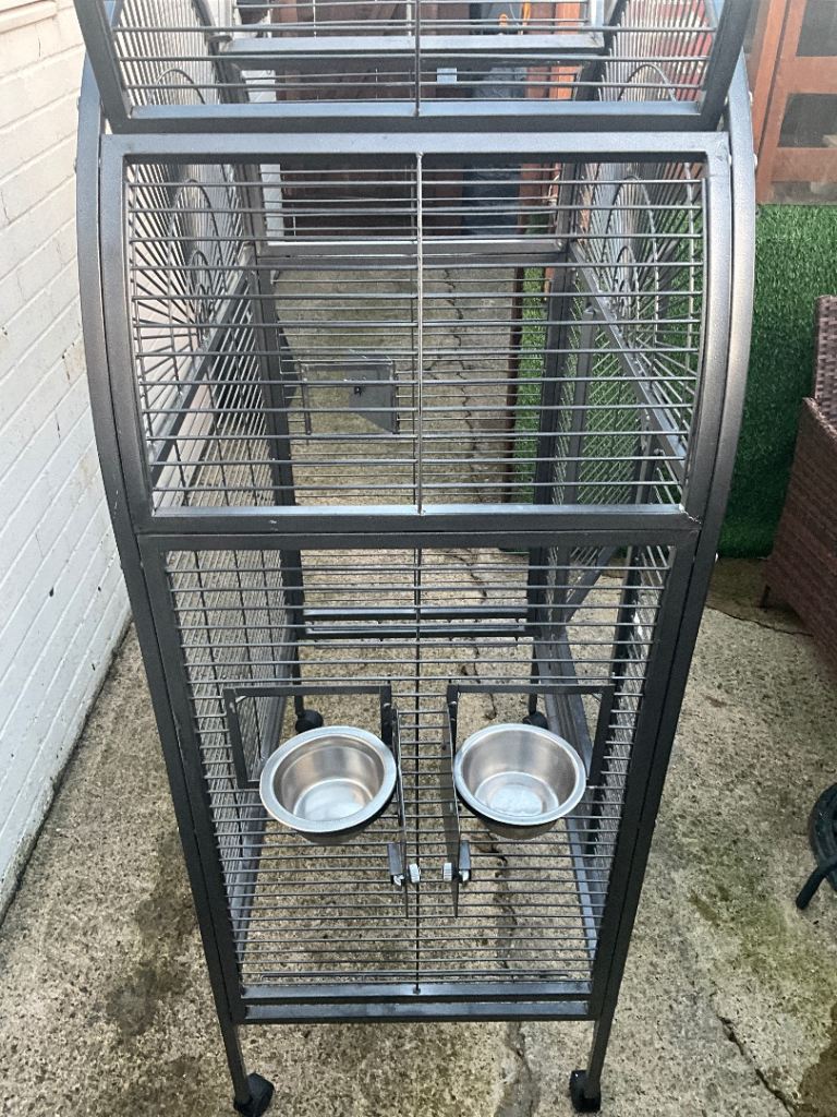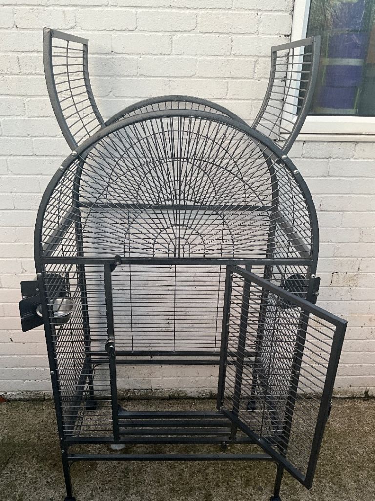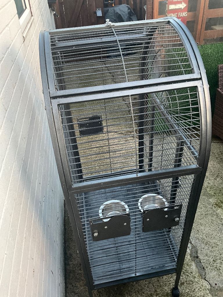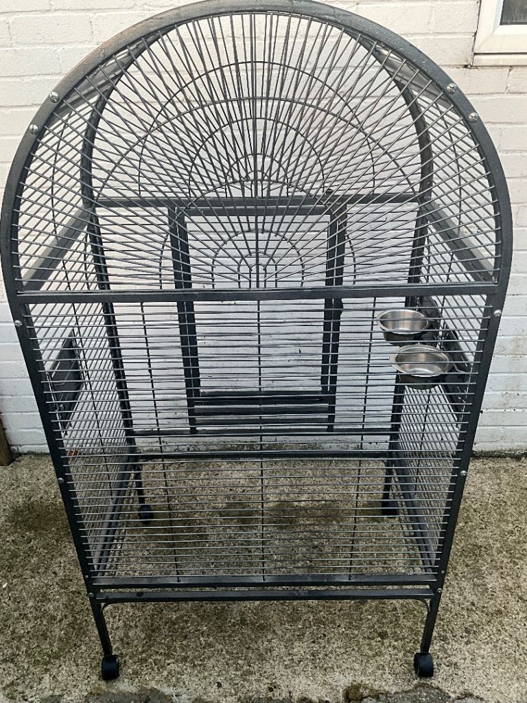 Here we have is a beautiful large parrot / bird cage looking for its new bird home ready to go. We got a smaller cage for our parrot as this one came with her so we found it to big. Also comes with one food and one water bowl.