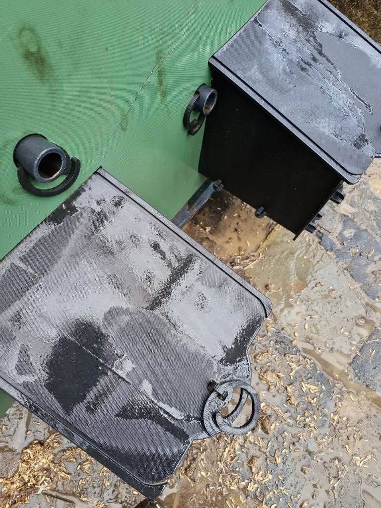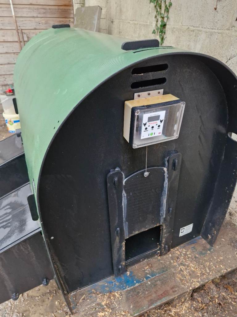 Solway chicken coop, 2 x nest boxes, 2 internal perches, made from recycled plastics, whole unit can be taken apart and reassembled, easy to clean, hygienic, difficult surfaces for parasites to inhabit, I've never seen red mite since buying this unit. Has auto door open/close