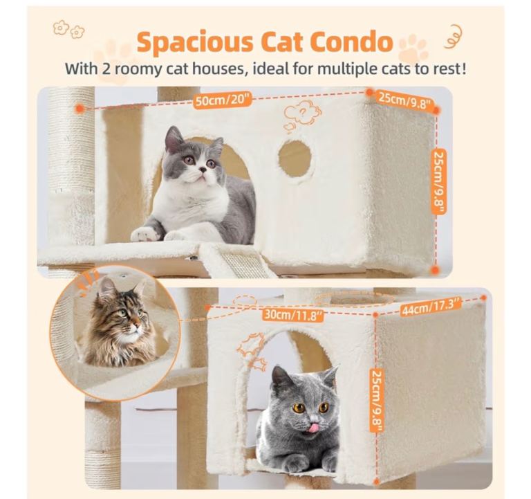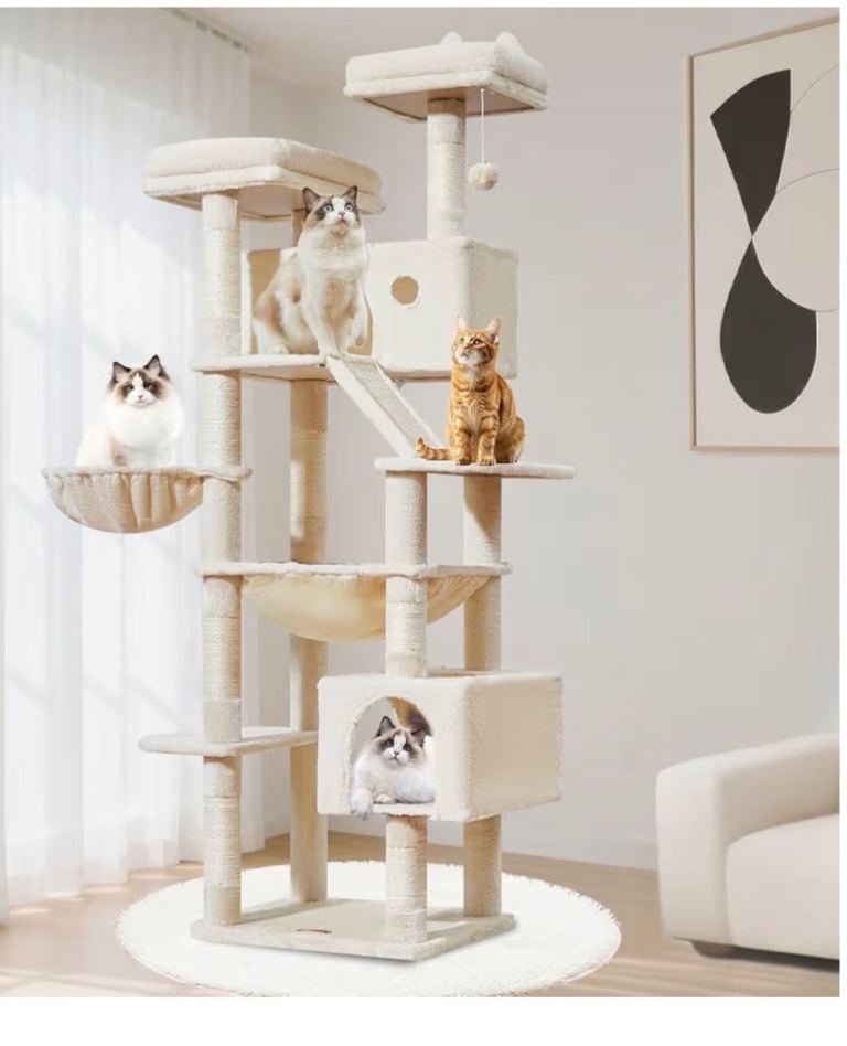 Brand new cat climbing tree, soft faux fur in cream, scratching posts and hideaway, ideal for kittens and cats of all sizes, very easy to assemble and sturdy, new in box with full instructions
