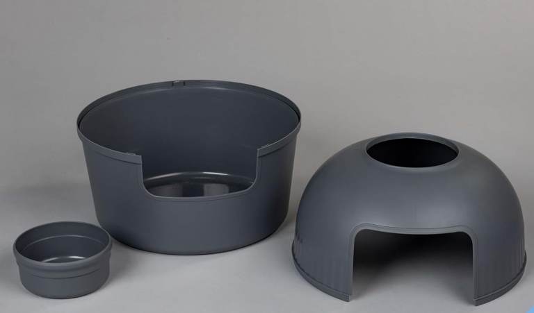 This litter box is delivered in 3 parts, which are very easy to assemble.