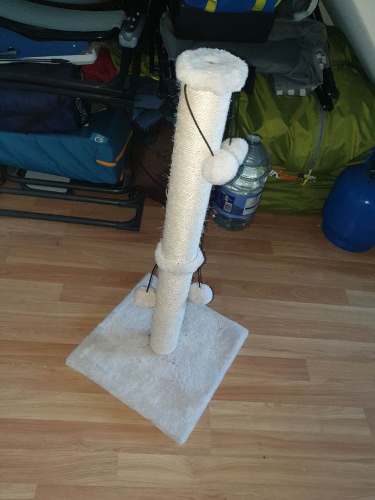Free to first responder. Good condition cat scratching pole and large little tray/box. 2 handles missing but still works as intended.