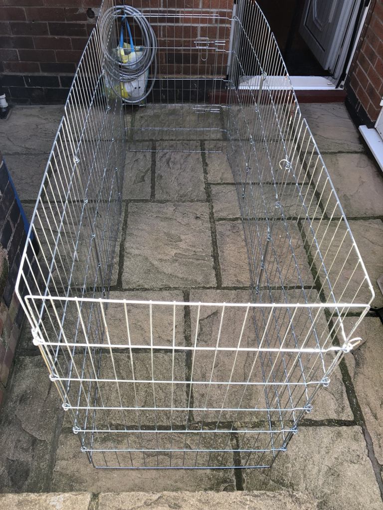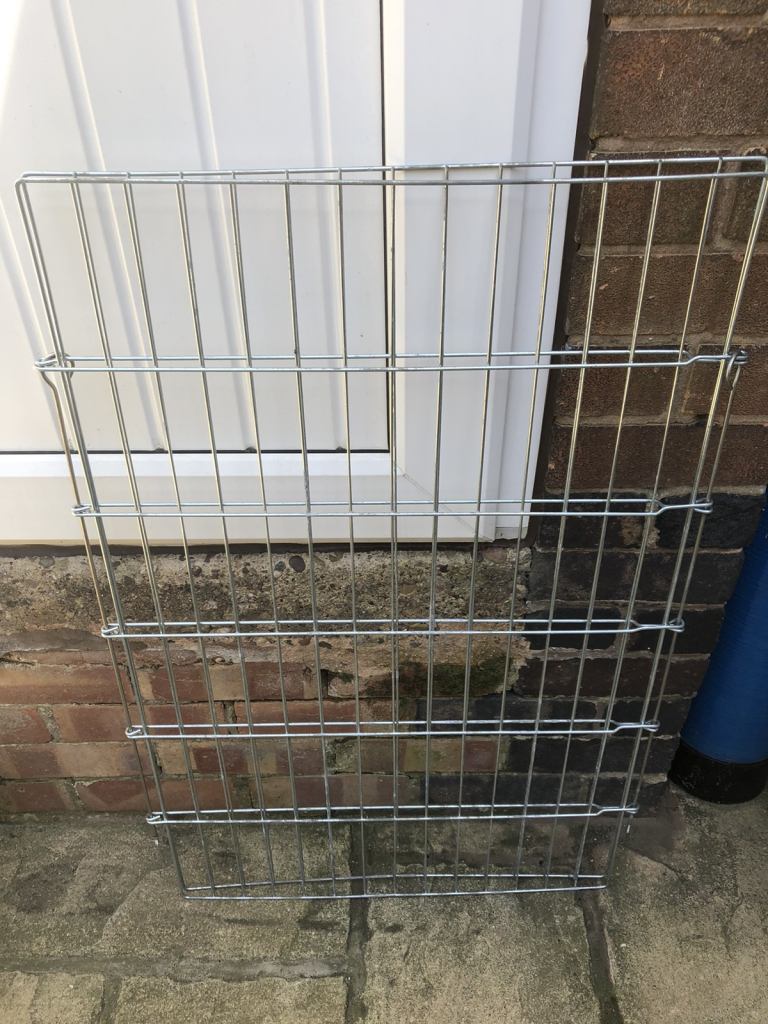 Metal crate sides only. Consists of eight pieces, one with door. Each piece measures 22.5 x 36 inches. Used but in reasonable condition.