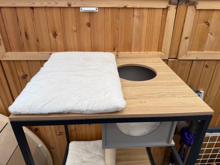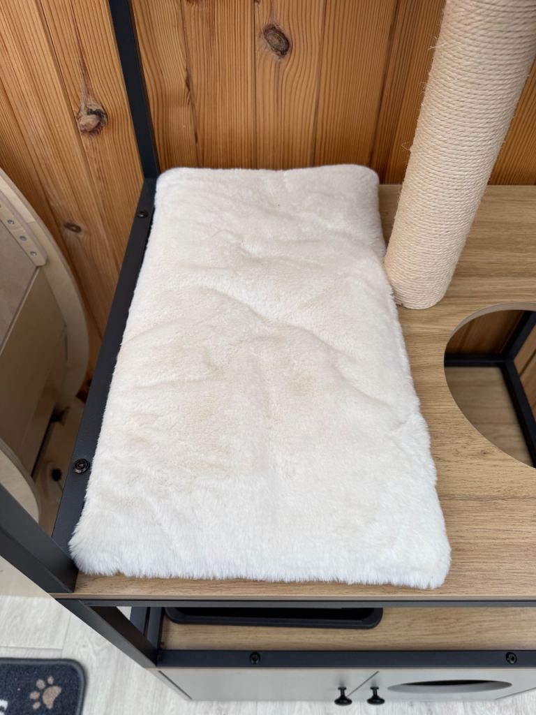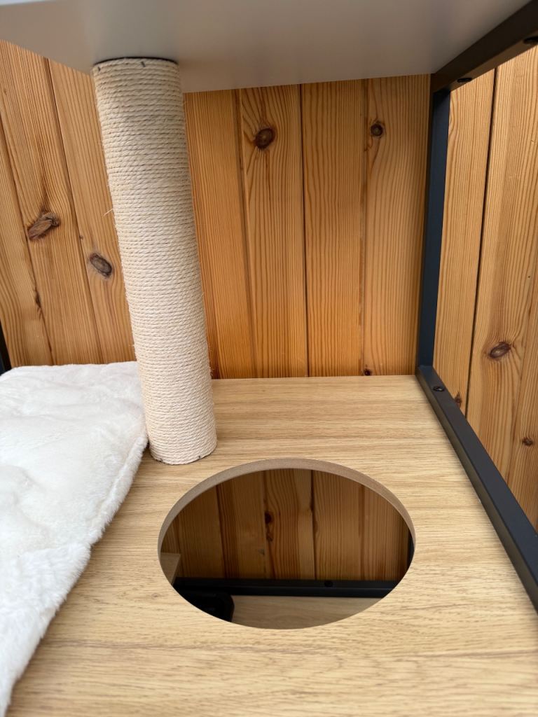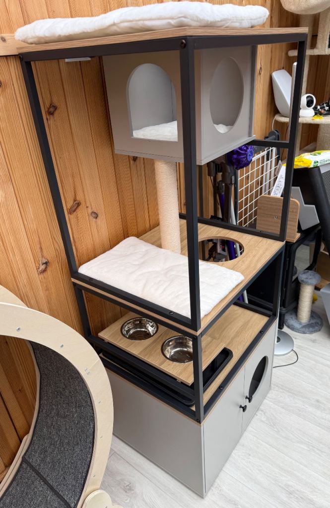 Posting for 8+ yearsModern Cat tree with feeding station and hidden litter box area - NEW