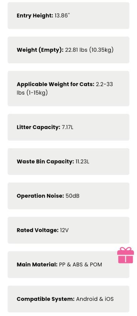 Only used for 2 weeks. Unfortunately, my cat doesn't like automatic litter box so I have to sell it. Original price is £549. Works perfectly fine and comes with 2 packs of bin liners. Very easy to clean and honestly a great automatic litter box and the app is helpful and easy to use. Can also be used by multiple cats and have their weight monitored and etc.