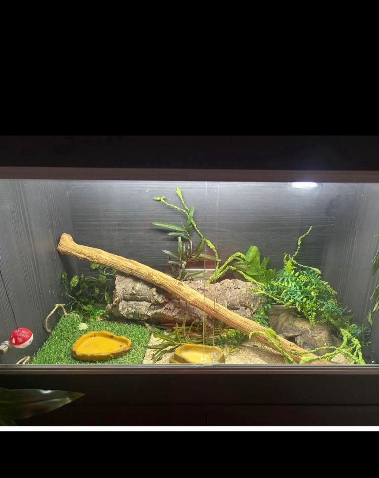 This nearly new vivarium is perfect for housing lizards, snakes, and other reptiles. With a focus on creating a safe and secure environment for these animals, this vivarium provides the ideal space for creatures to thrive. The design is specifically tailored for reptiles, offering a comfortable and adaptable setting for pets to enjoy. Whether you're a seasoned reptile owner or just starting out, this vivarium is sure to meet the needs of your scaly companions.