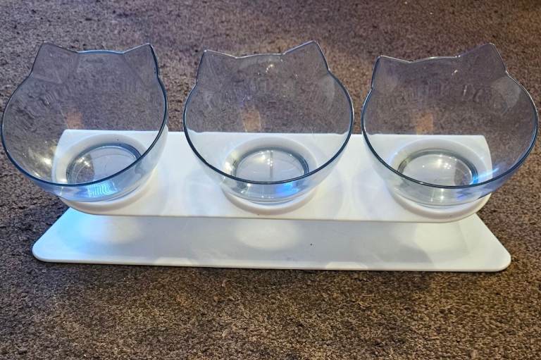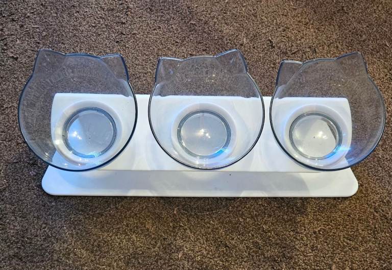 Brand new 3 in 1 cat feeder bowls. Tilted design reduces stress for pets neck and back. Bowls detatch from stand for easy cleaning
