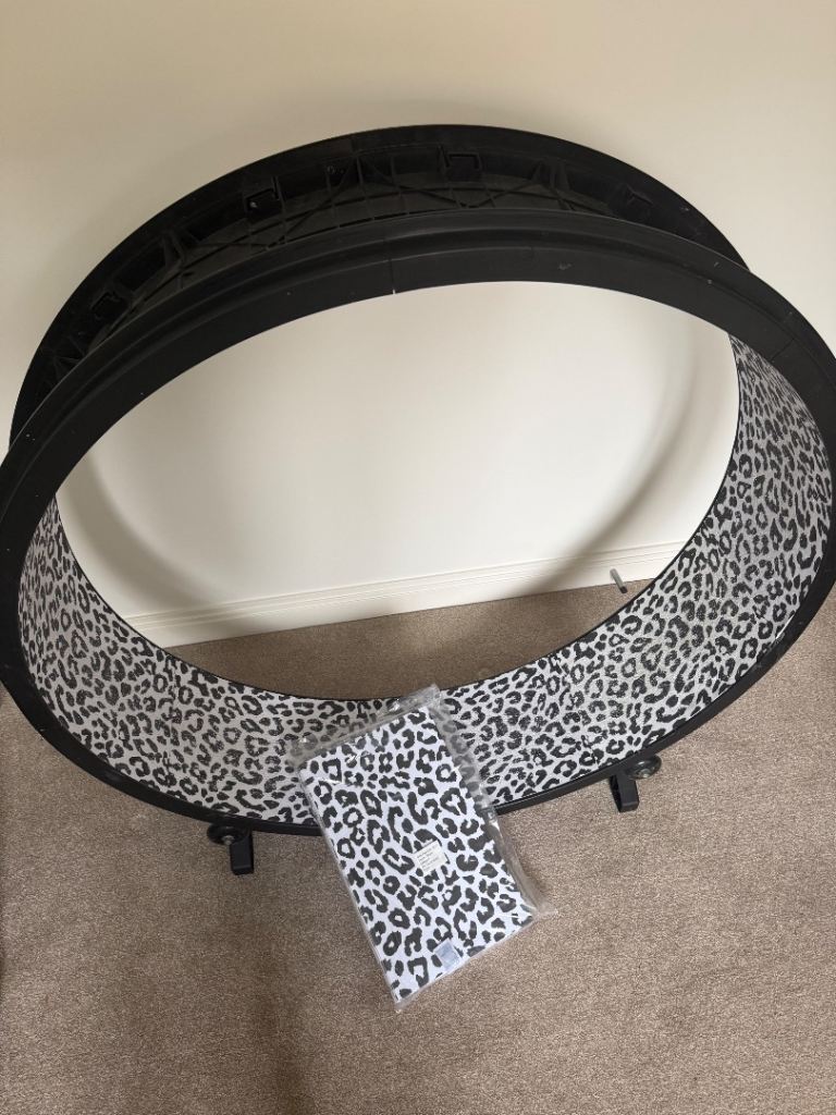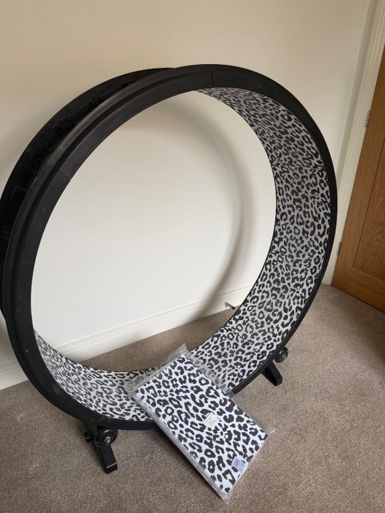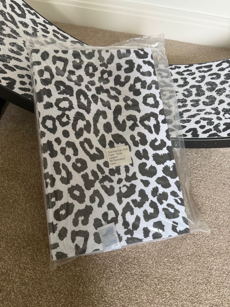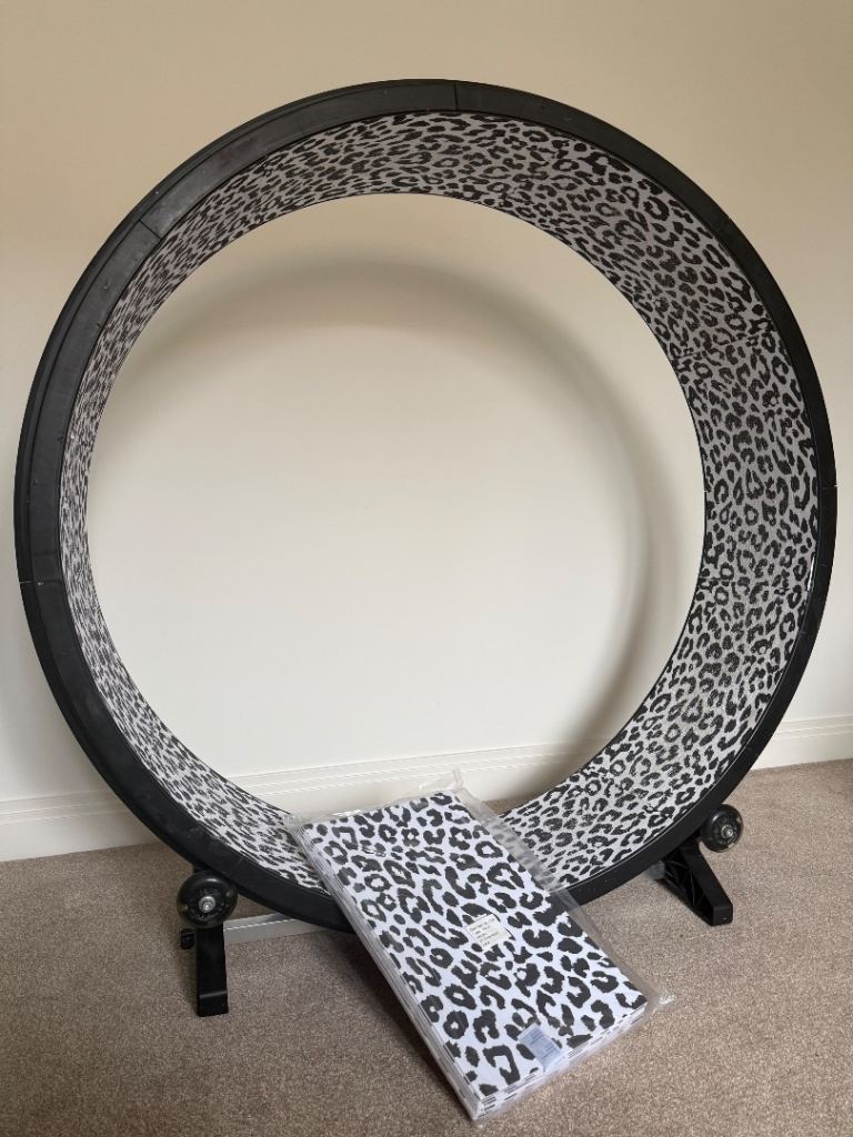 The One Fast Cat 5th Generation exercise wheel with fancy LED wheels that light up as the cat sprints on the wheel. Includes a brand new pack of replacement pads - Snow Leopard colour.