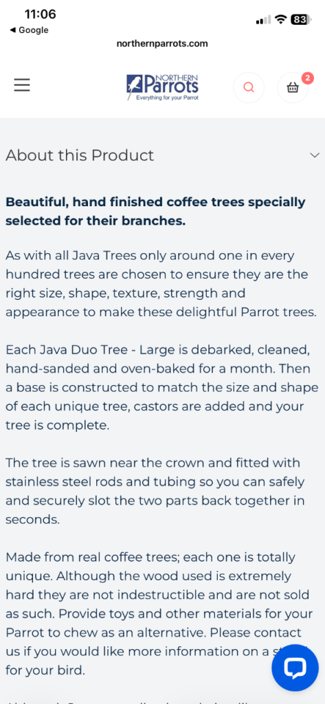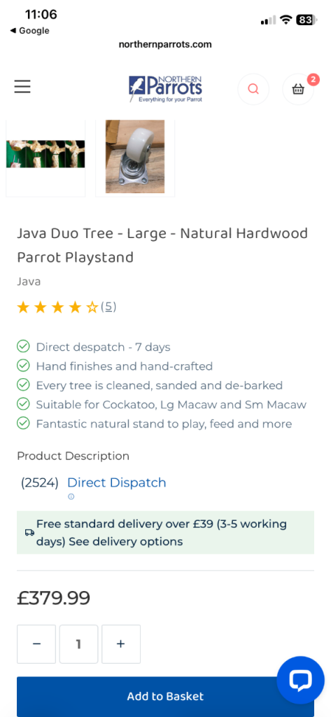 Bought this for £379 it’s the biggest one they do but my bird won’t go near it it’s been assembled but never used can be taken down for transportation collection only from newhall suitable for macaws or a confident smaller bird