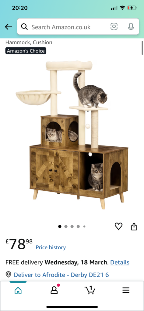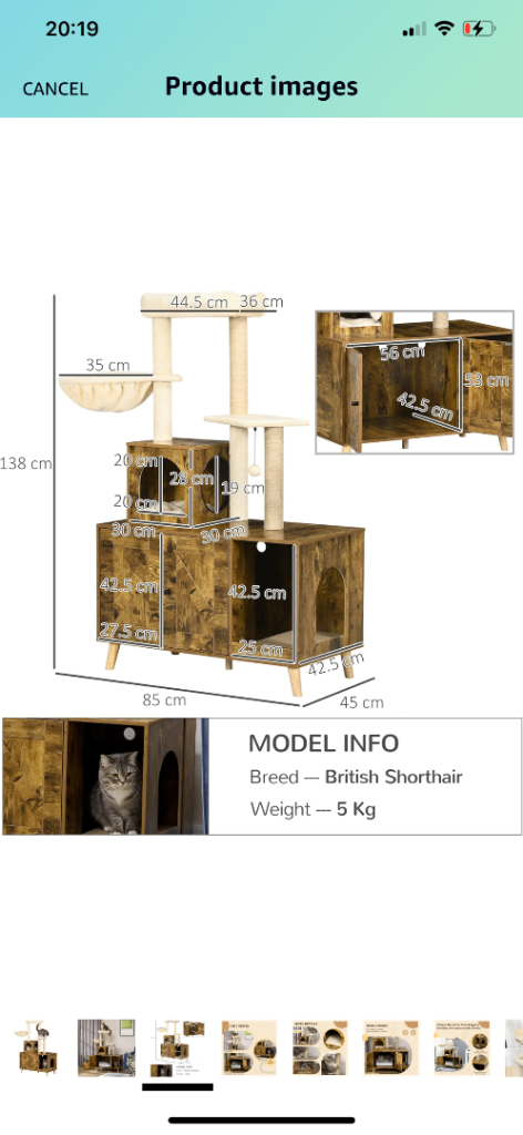 Posting for under a monthPawHut Litter Box Enclosure with Cat Tree Tower, Hammock, Cushion