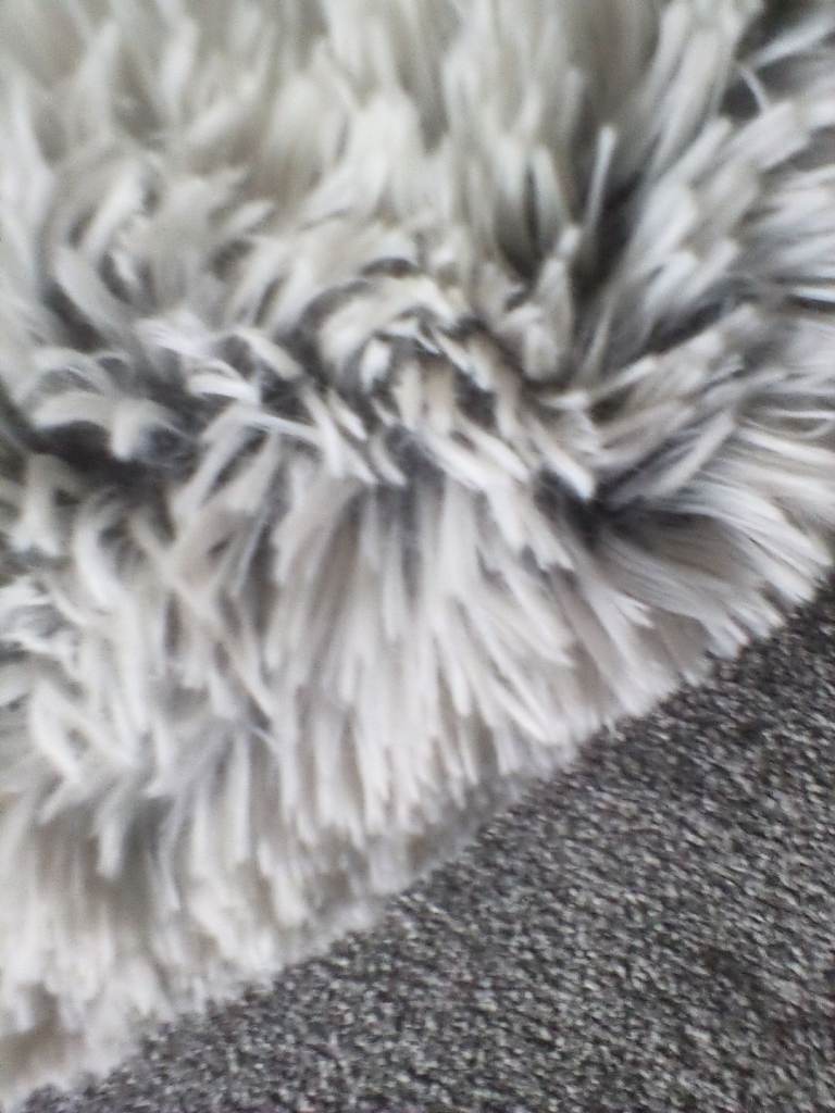 Cosy Home (QVC) 58.5 cm diameter, light/dark.grey super soft faux fur. Removable polyester filler pad with odourology. Non slip. Brand new. My cat refuses to use it. Bargain.