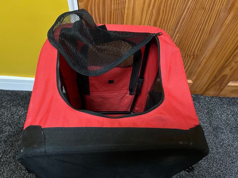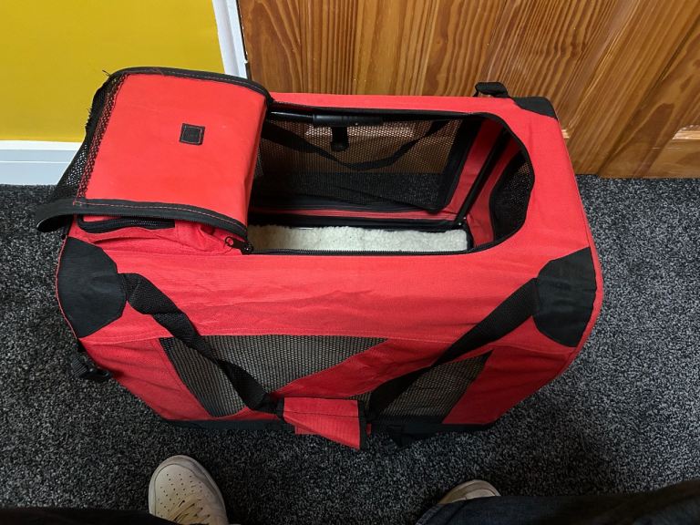 Travel crate for pet. Would suit small dog e.g. Shi Tzu. Has been used but our dog didn’t like being in it. Has a sheepskin effect liner which is dirty but we will wash it before collection otherwise in excellent condition.