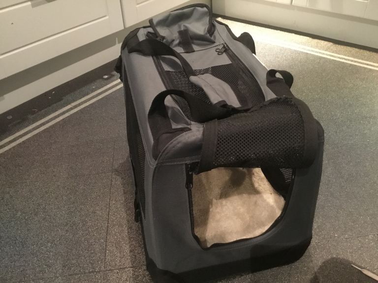 Cozy Pet. As good as new lightweight fabric pet travel crate.