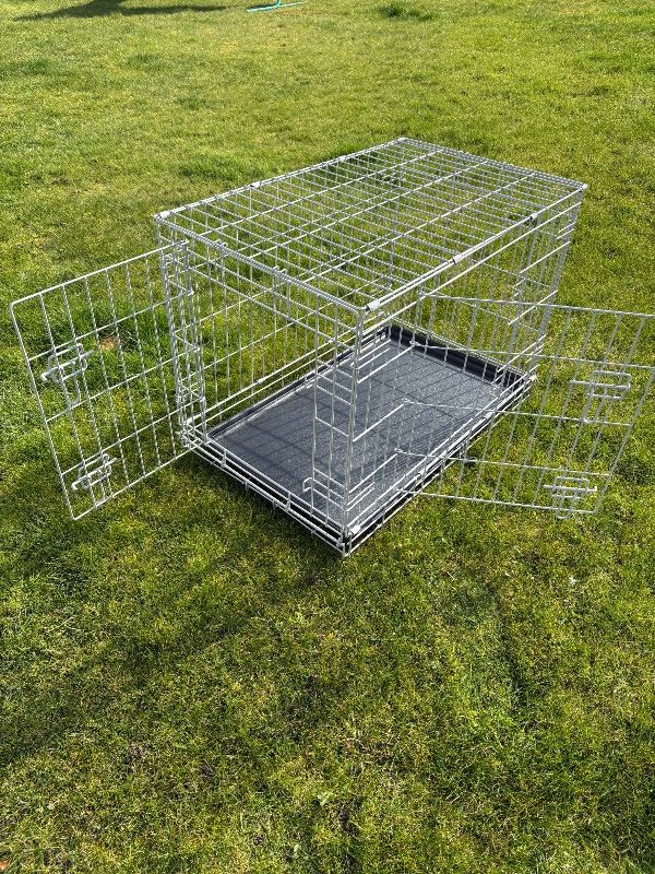 Small, foldable, double door dog crate, barely used, from Pets at Home. Excellent condition.