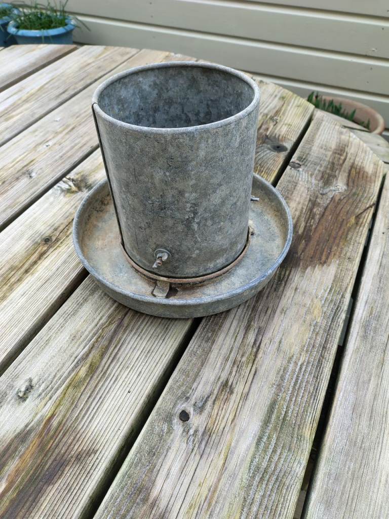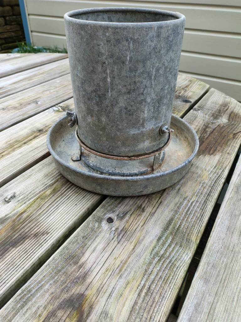 Quality heavy Eltex galvanized bird feeder with galvanized rain cover. Height adjustable to control feed flow.