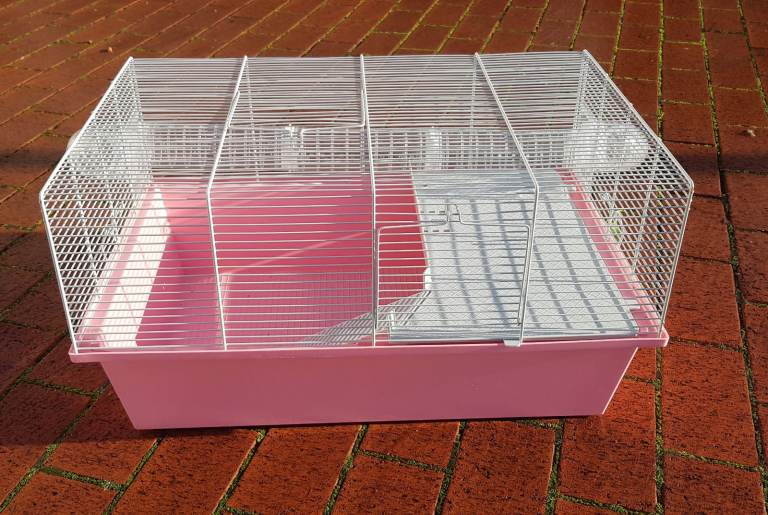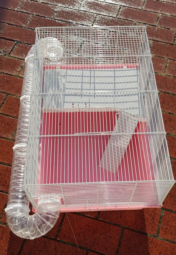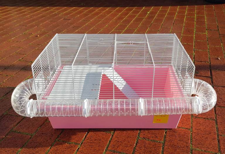 Pre-owned Pink Small Animal Cage in good condition comes with the platform and tubing