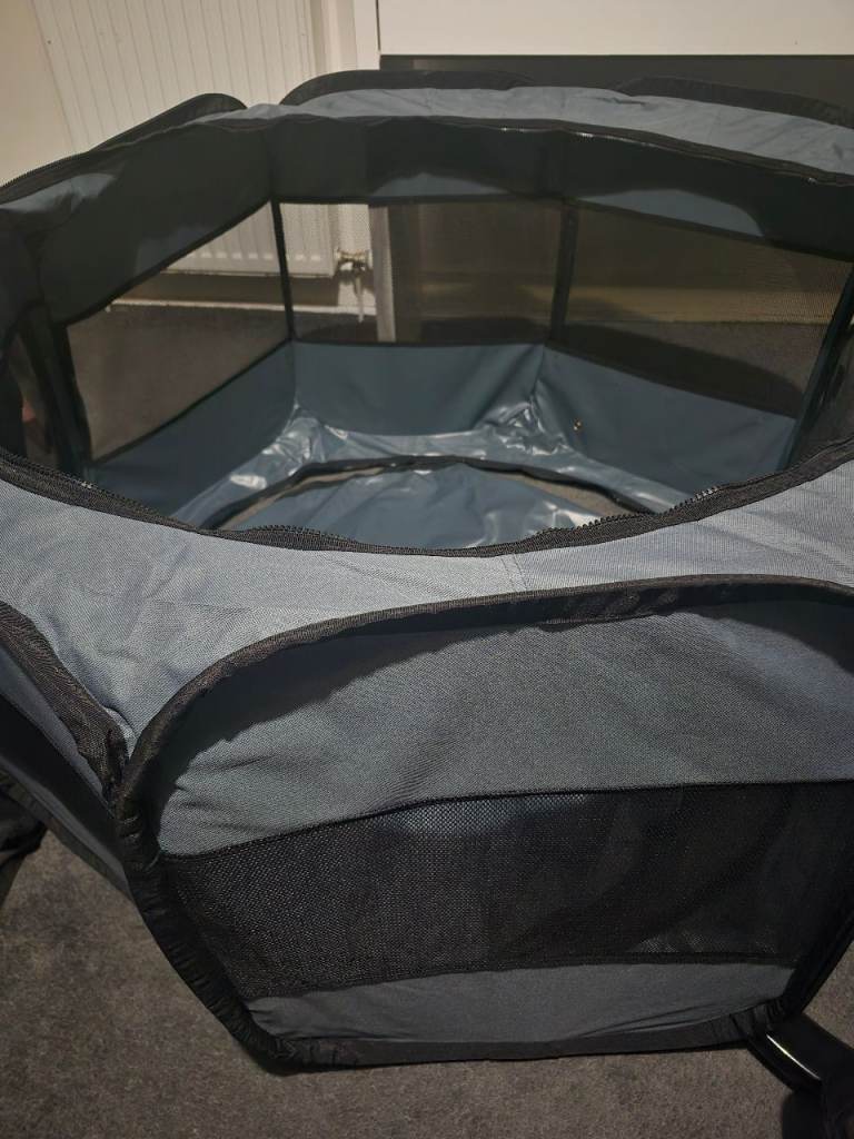 Pop up travel pen, used once for a trip but ideal for outdoor puppy usage as can unzip or keep zipped before vaccinations.