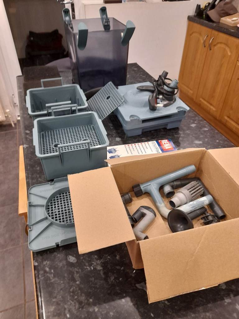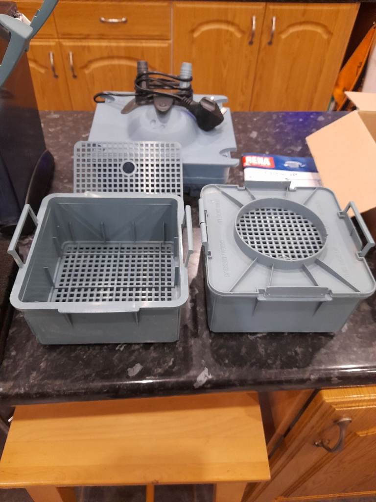 The filter has 2 baskets for a selection of media. Included is 4 sponge filter mats and I'll put in some fibre wool. One of the baskets has a cracked handle but doesn't effect the usage.