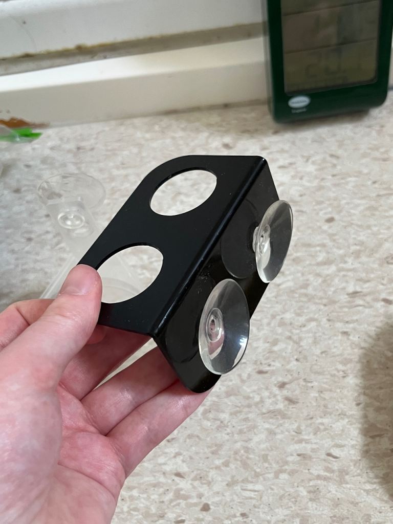• Suction-mounted mealworm feeder
