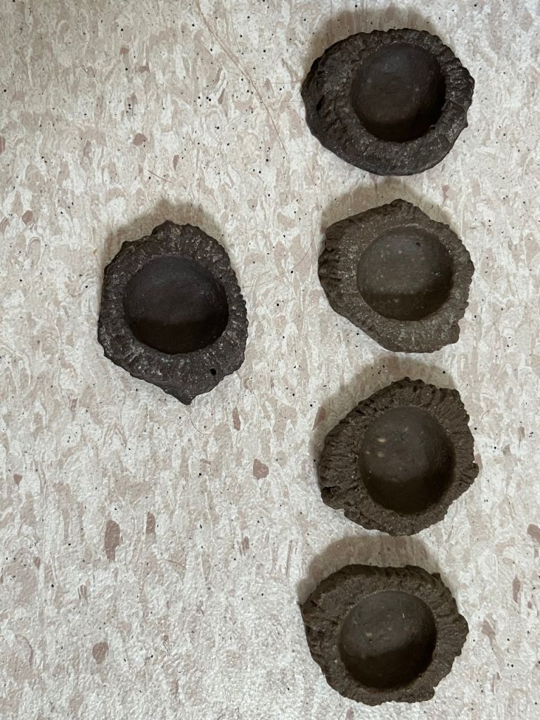 • 5 natural coconut shell insect feeding bowls