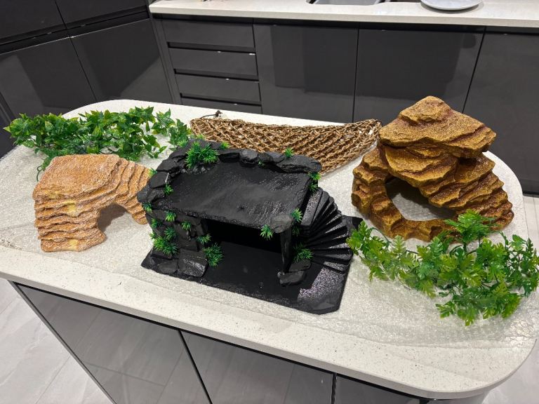 All the used decor/housing/vivarium has been cleaned and boxed up, will provide reptile safe antibacterial spray with bundle if you wish to clean again.