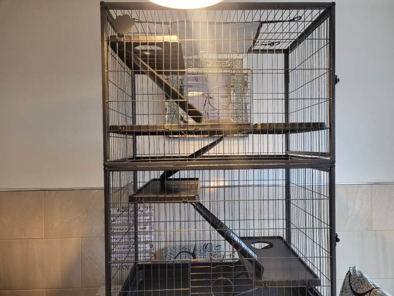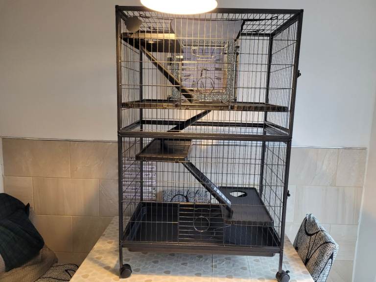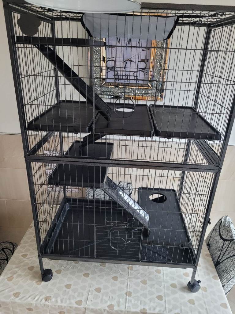 A brand new rodent cage I just took it out of the box and built it so that you can have a good look at it you are welcome to view it's a good bargain it's 20 "W and 31 " L and 50 "H it can do for rats hamsters 🐹 ferrets and many other rodents.