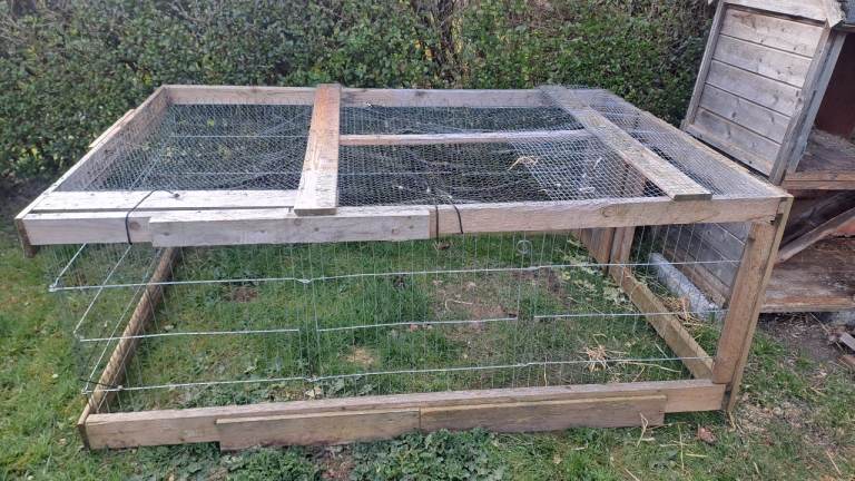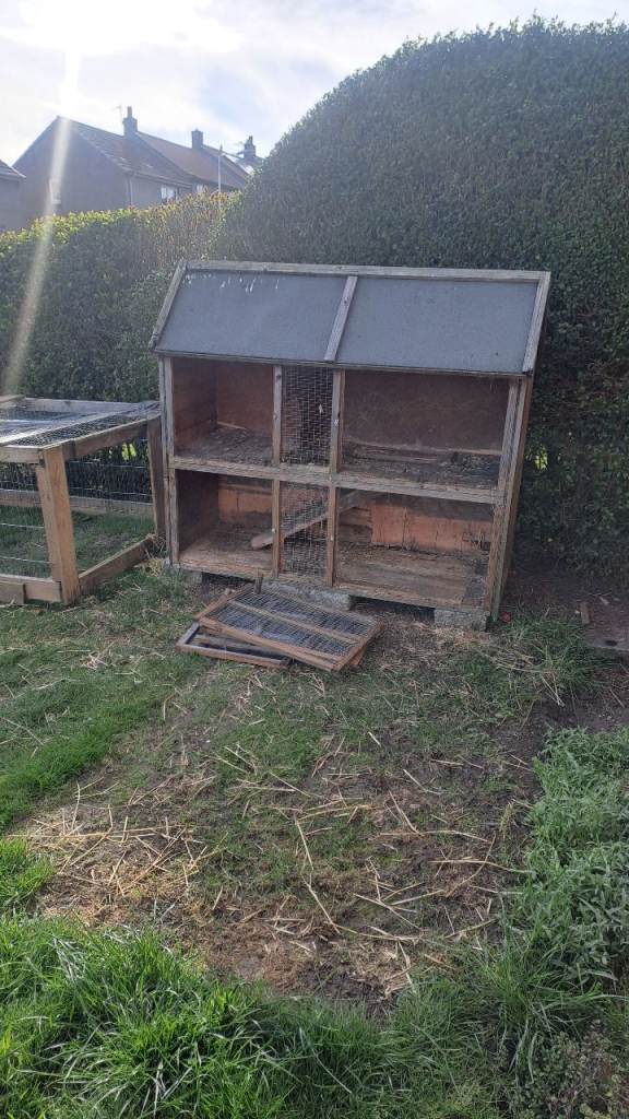 Sturdy and really handy for an extra wee space for bunnies or guinea pigs. The run and hutch are free to a good home. The hutch isn't in the best of conditions but it is water tight. We replaced the floors last year. The roof could do with a fix up but it doesn't leak. Took the doors off to clean it out.