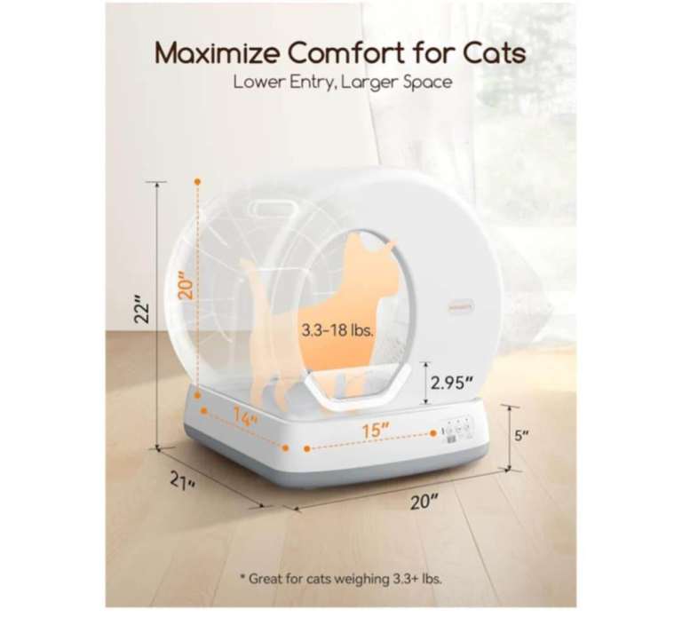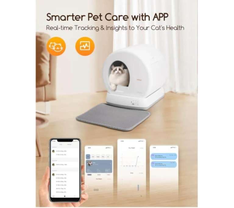 MeoWant Self Cleaning Cat Litter Tray, Integrated Safety Protection Automatic Cat Litter Tray for Multiple Cats, Extra Large/Odor Removal/APP Control Smart Robot Tray with Mat & Liner.