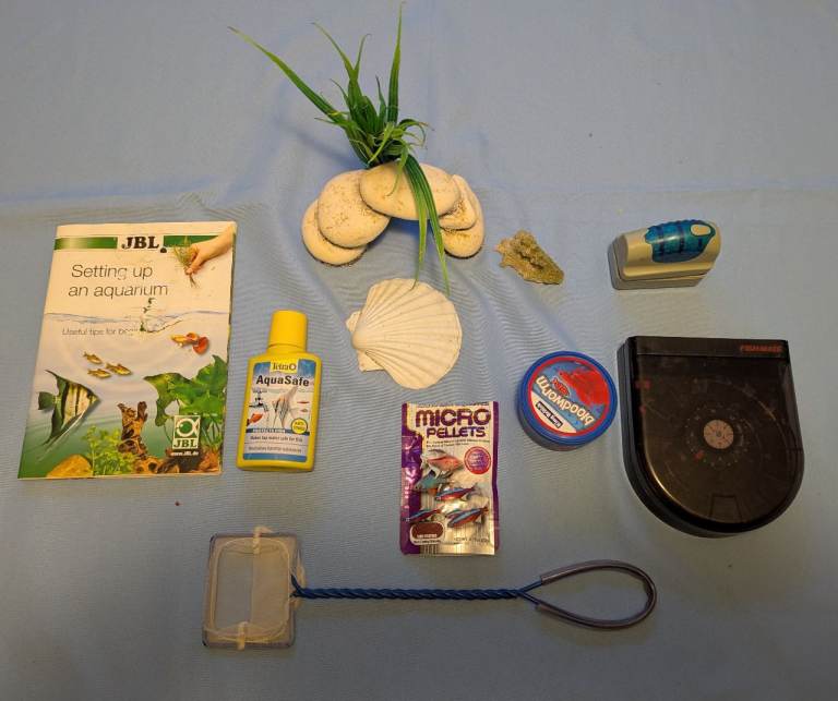 12L plastic aquarium with lots of accessories, ideal for starting up keeping fish. Includes: