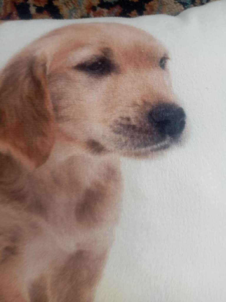 A lovely small soft cushion depicting an image of a dog. Only £5. A really nice, clean item.