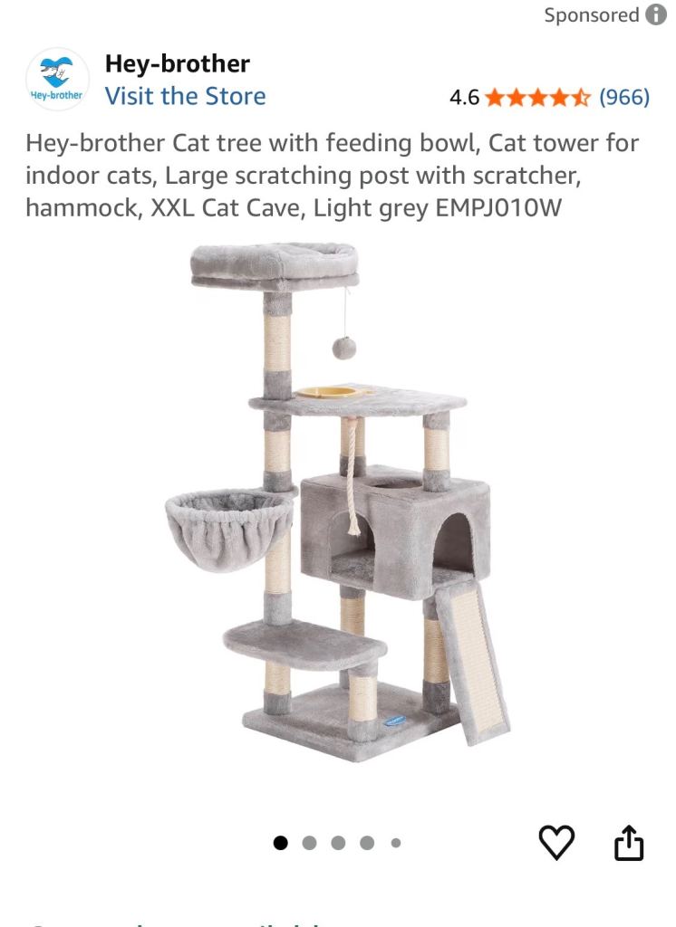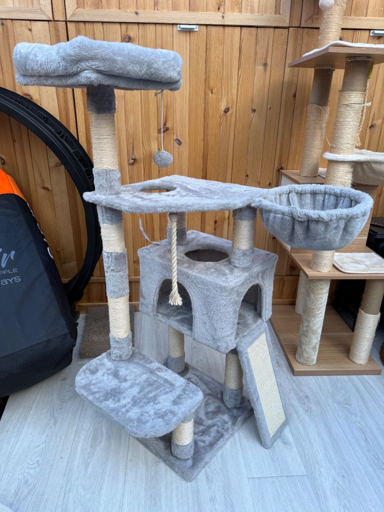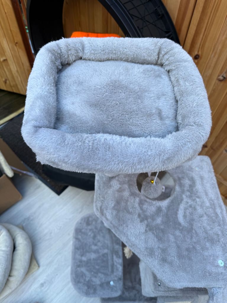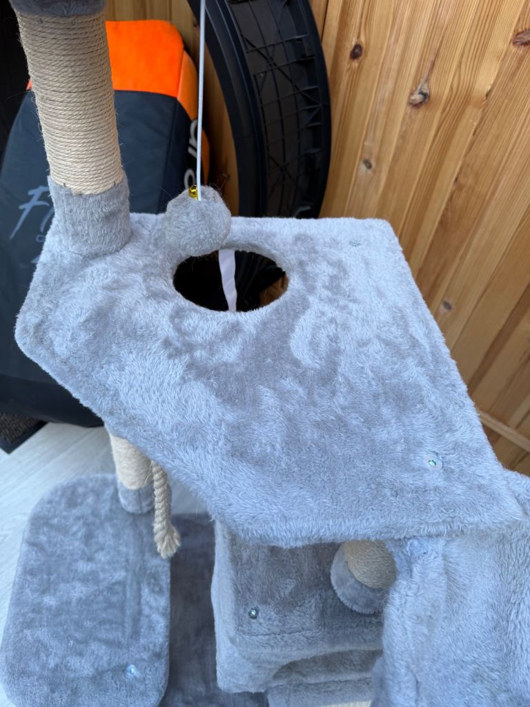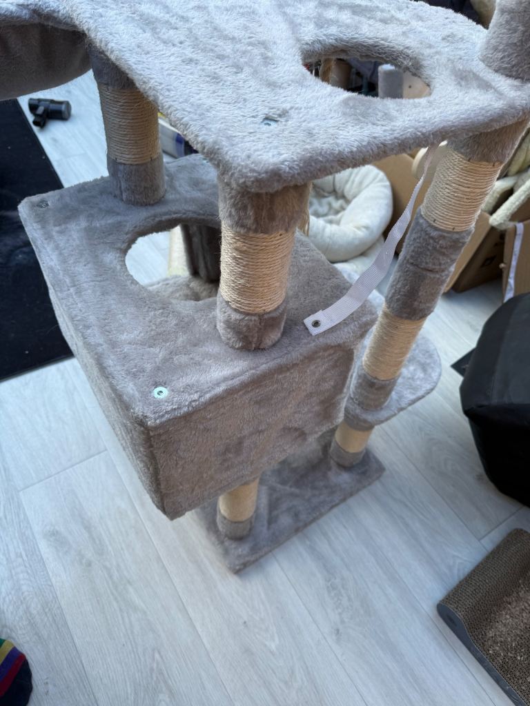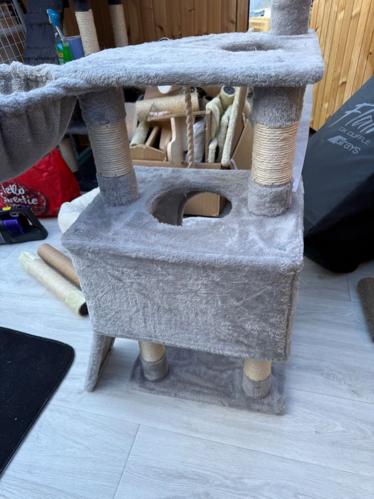 Clearing out cat trees, this one was stored and not getting used. I can’t find the wee bowl that goes with it but I will keep looking. Personally think cats prefer to go up and down through the hole !