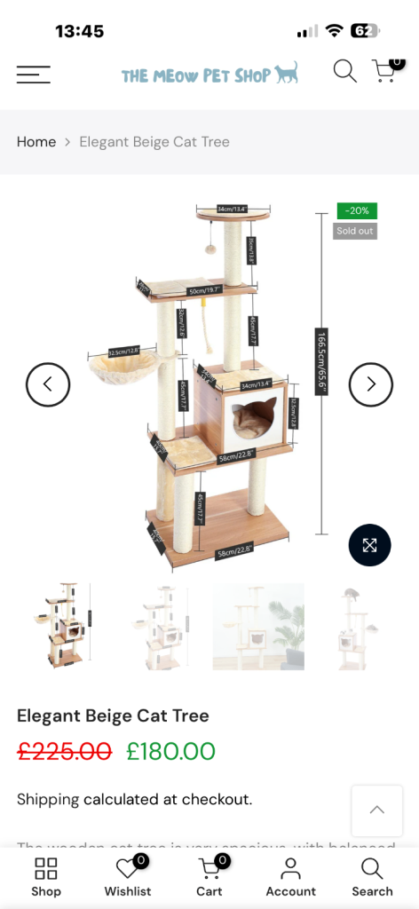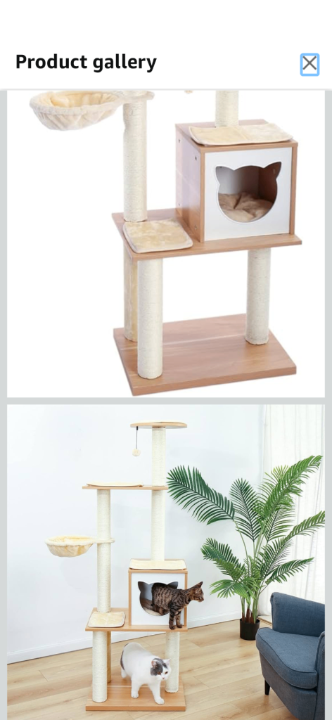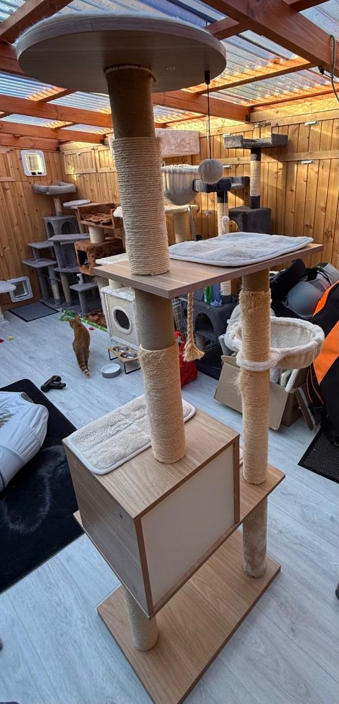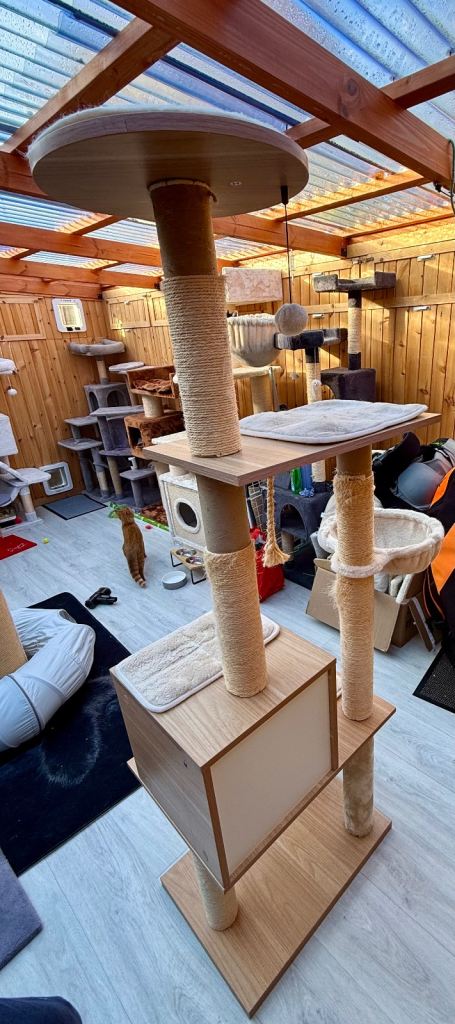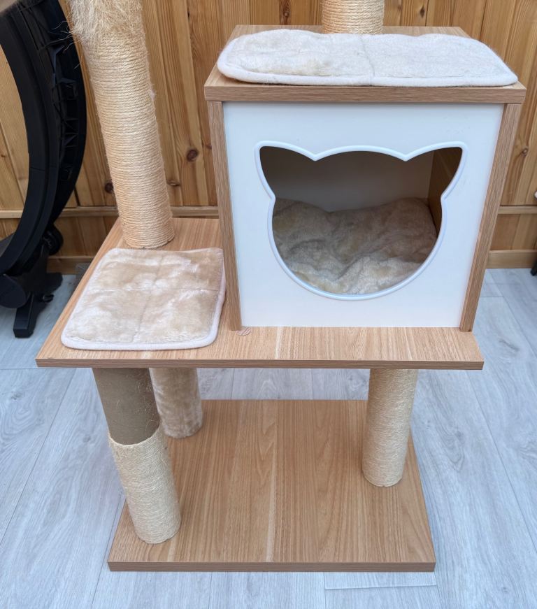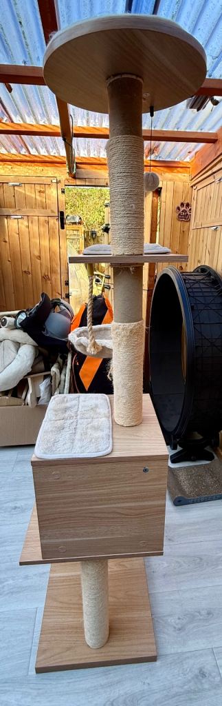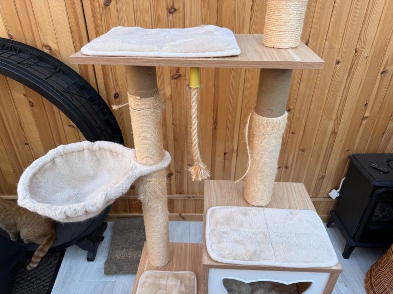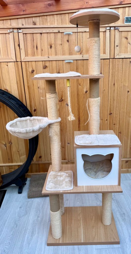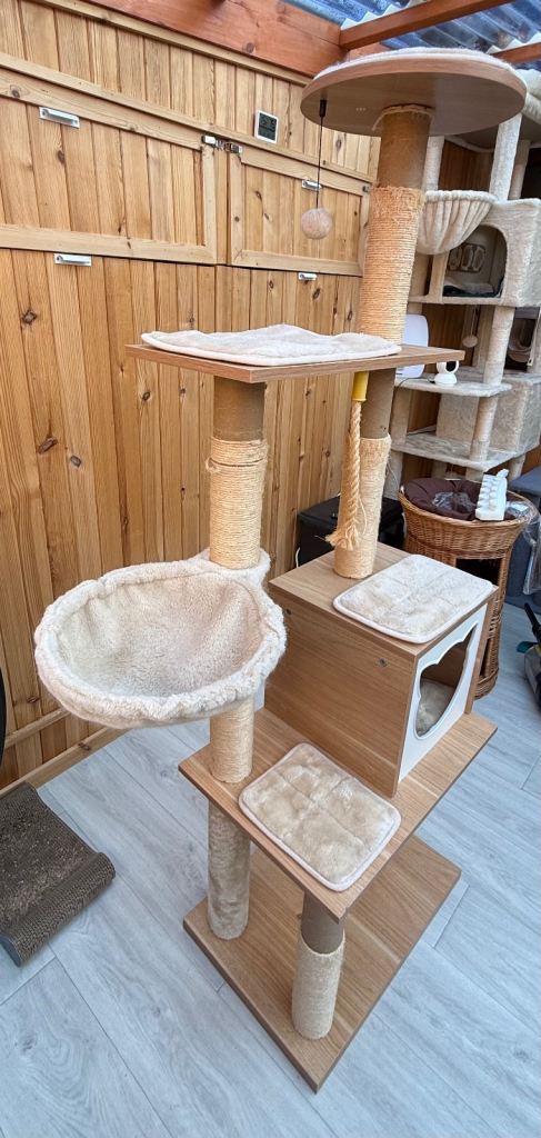 Clearing out cat trees. 4 posts have sisal missing which can easily be brought from Amazon and put on. It’s a modern looking cat tree that retails new for over £100. Description from website