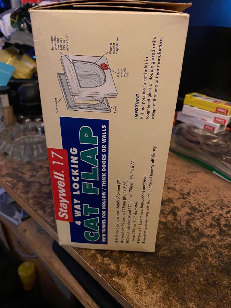 Posting for 6+ yearsStaywell. 17 4 WAY WAY LOCKING CAT FLAP WITH TUNNEL FOR HOLLOW / THICK DOORS OR WALLS