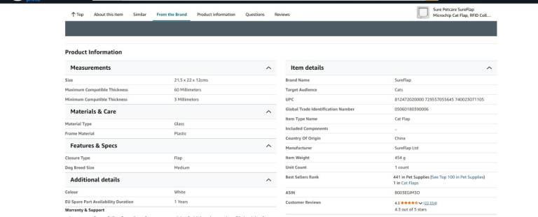 Posting for 11+ yearsSure Petcare SureFlap Microchip Cat Flap, RFID Collar Tags and Microchip Compatible