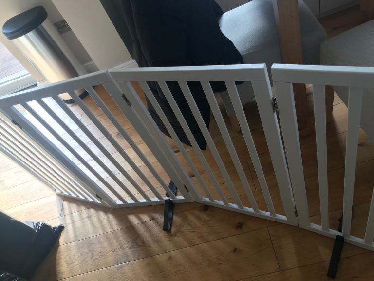 Tall Foldable Pet Gate/Partition in white. In original box. 188cm wide x 82cm high.