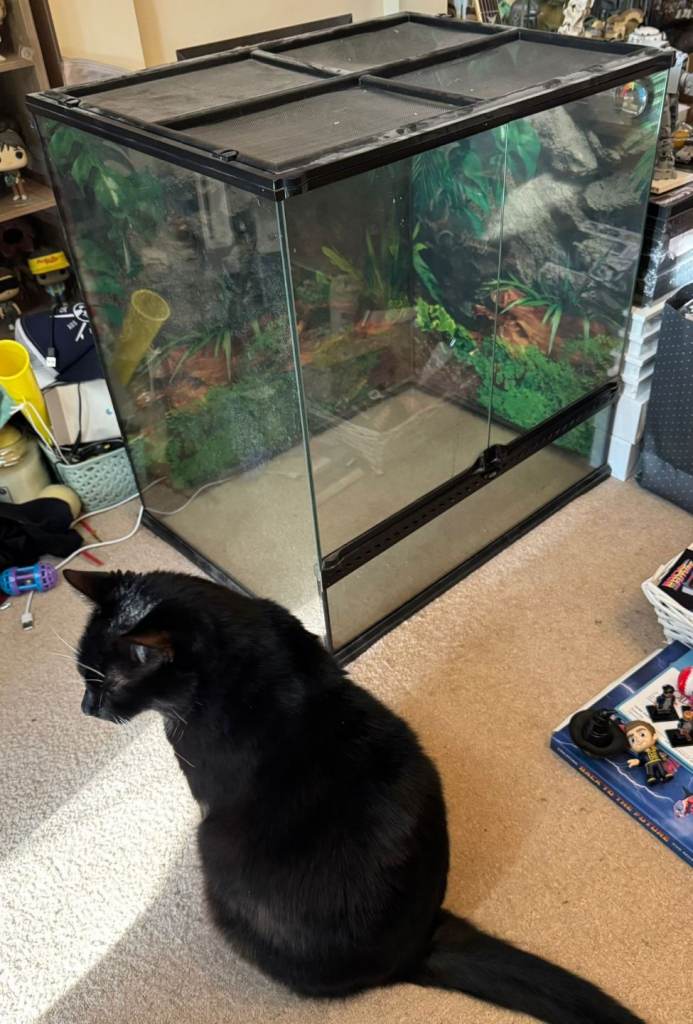 Selling as no longer needed ( cat not included lol ) Collect only more than welcome to have a look at it if you wanted have included the size of that vivarium please message me for anymore details