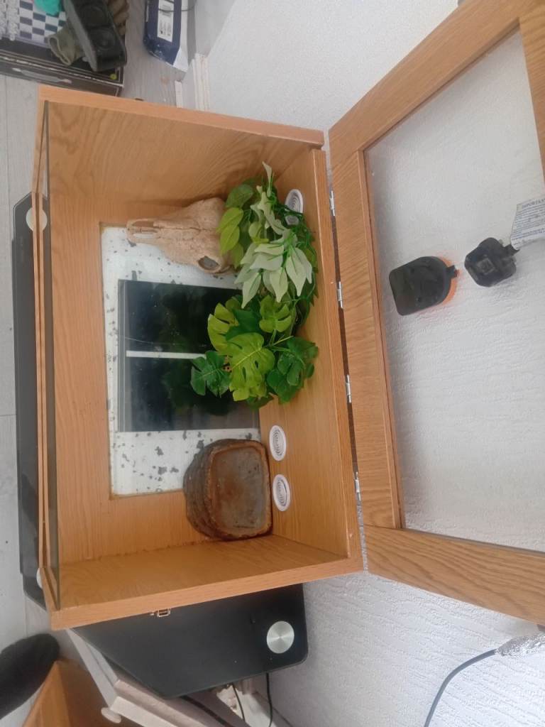Tall oak vivarium tank ideal for lizards/geckos.