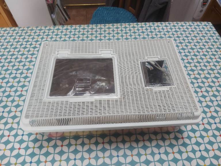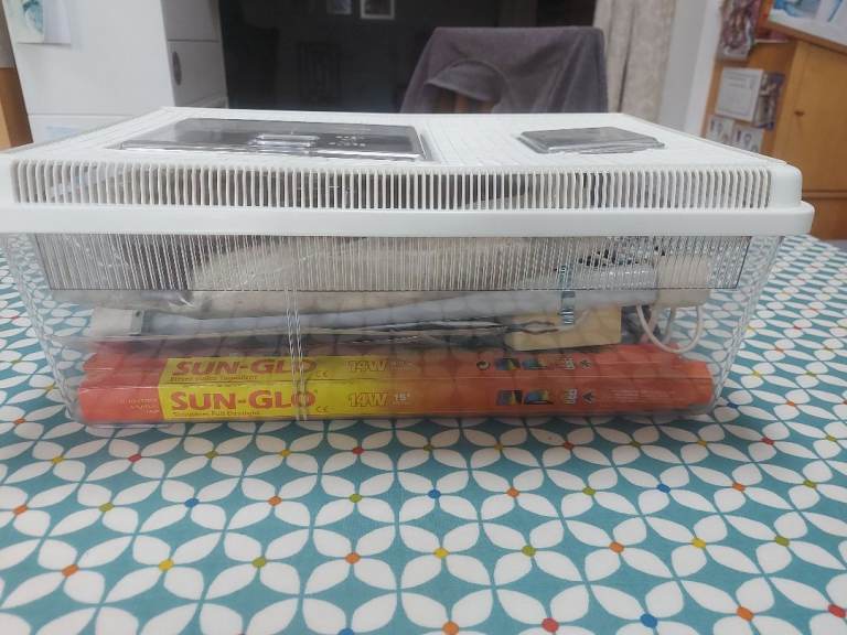 Vivarium with removable lid and two access doors. Overall dimensions len 46cm x width 31cm x height 18cm.