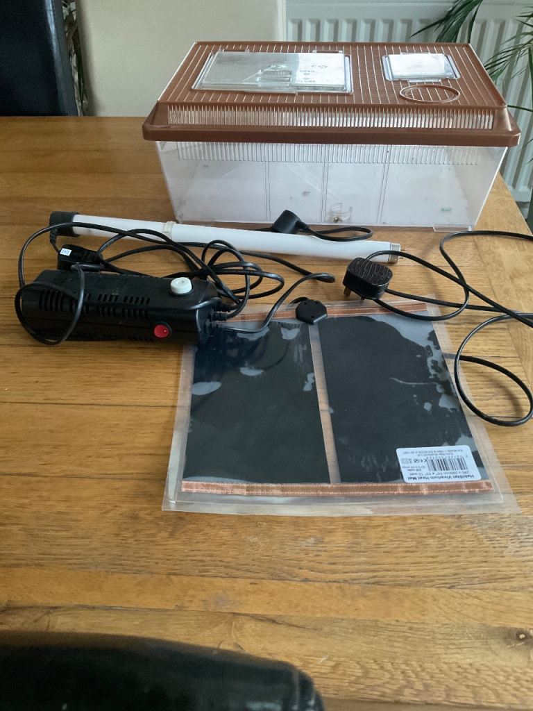 Vivarium for small lizards or the like. Working light and warming mat included. Need to pick up.