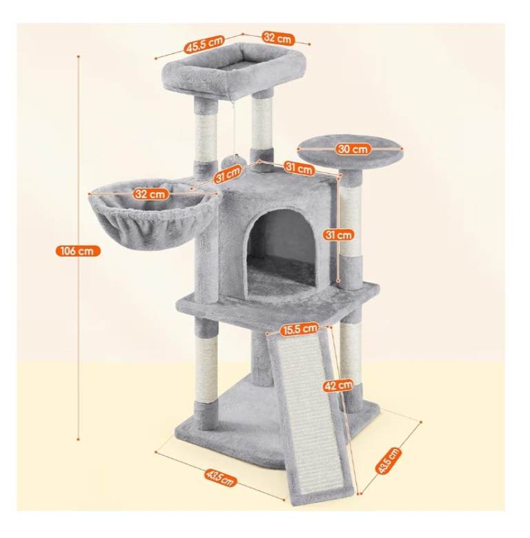Posting for 6+ yearsYaheetech 107cm Cat Tree Climbing Tower with Scratching Posts/Condo/Basket