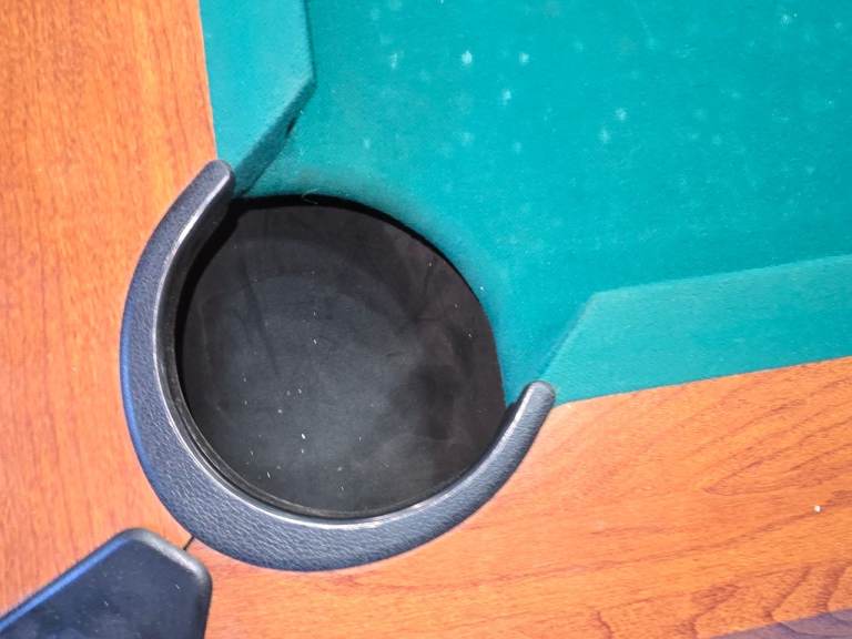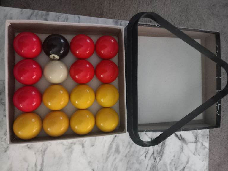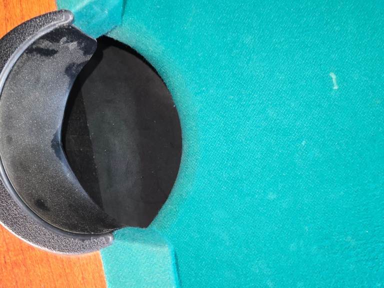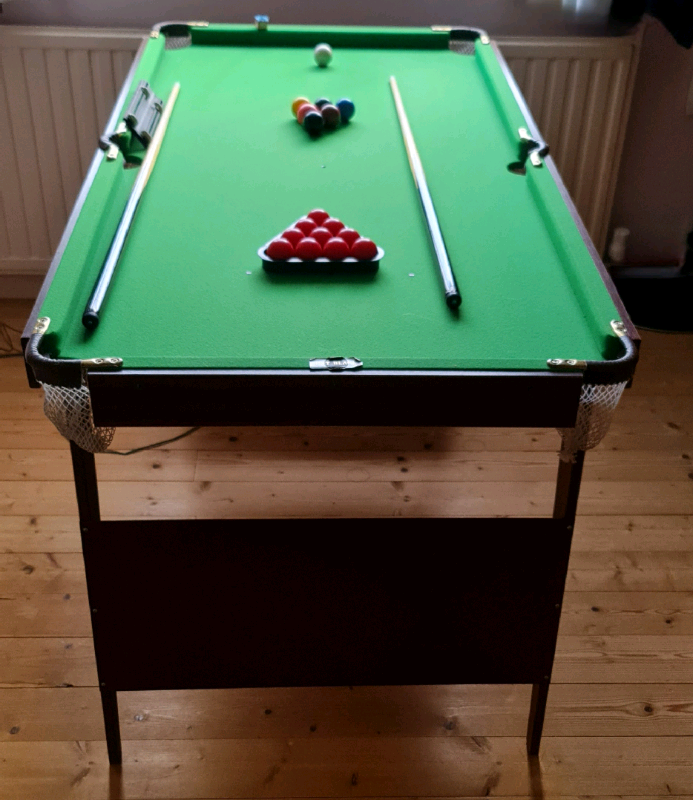 Slate bed pool table bought second hand in November but it's to big for my room cloth playable but does have worn white spit few marks very playable though would consider swap for 6x3 table comes with 1 cue and pool balls