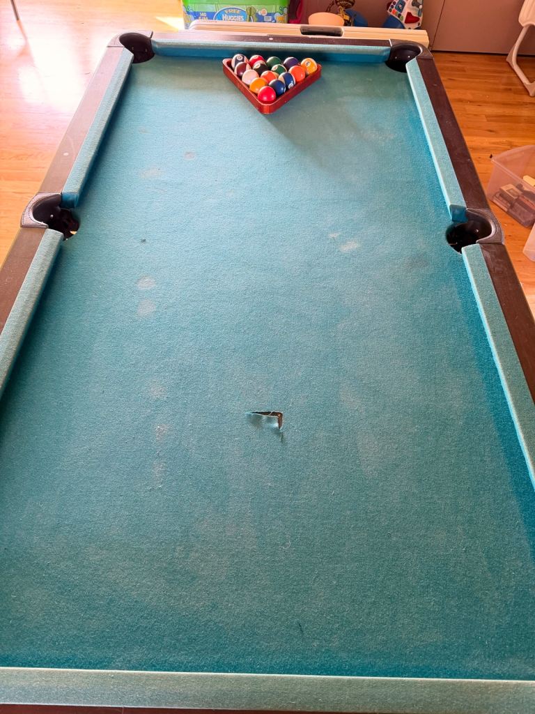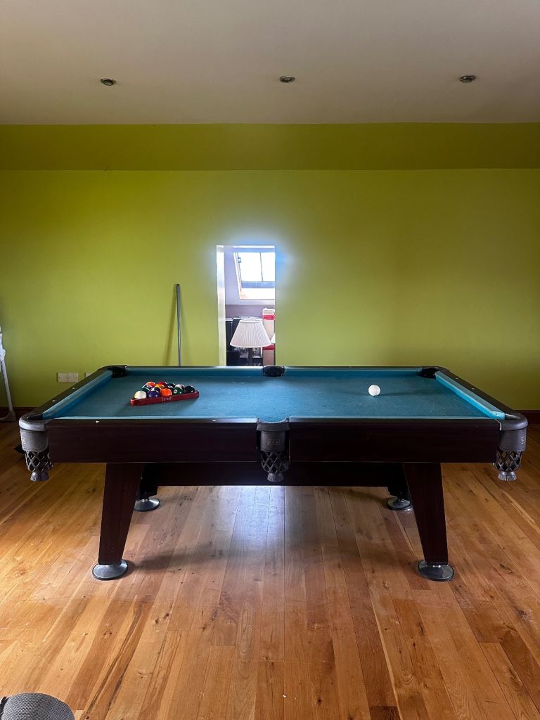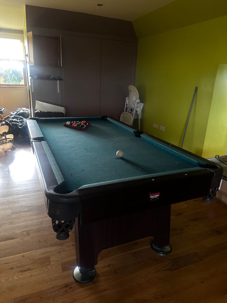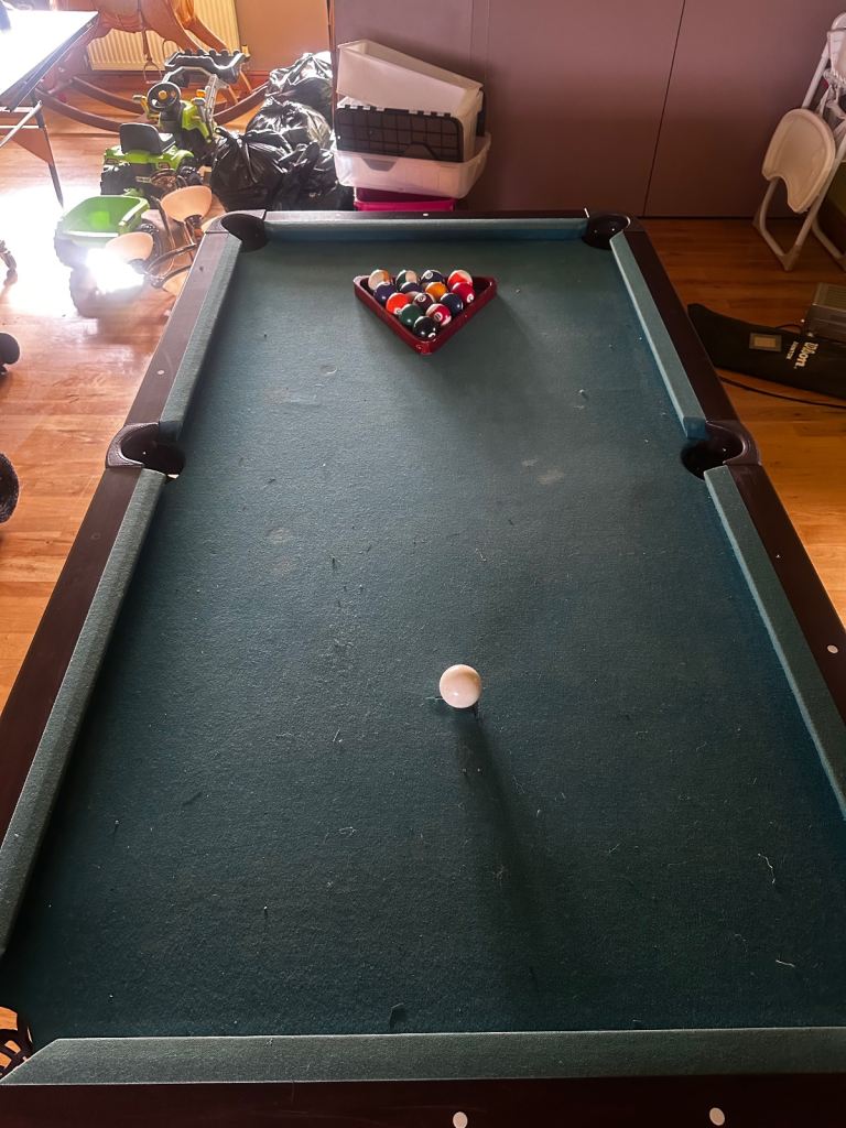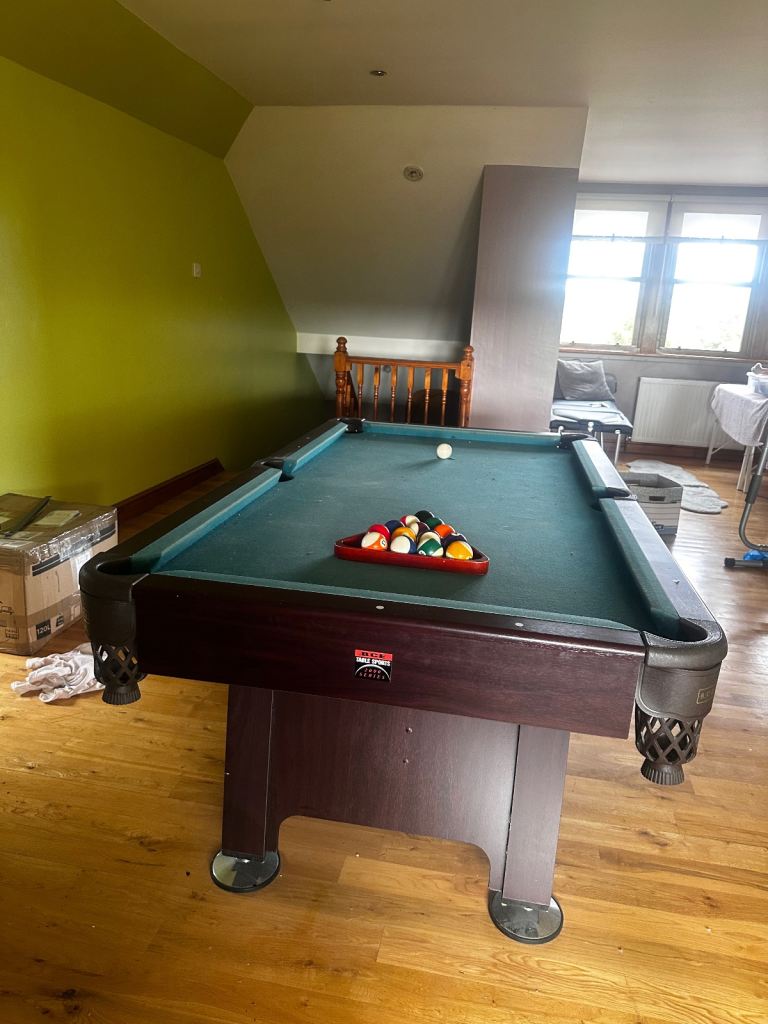 Open to offers, pool queues, triangle and balls included (one ball missing). Must collect and dismantle. It is approx 2m by 1m, and slate bed